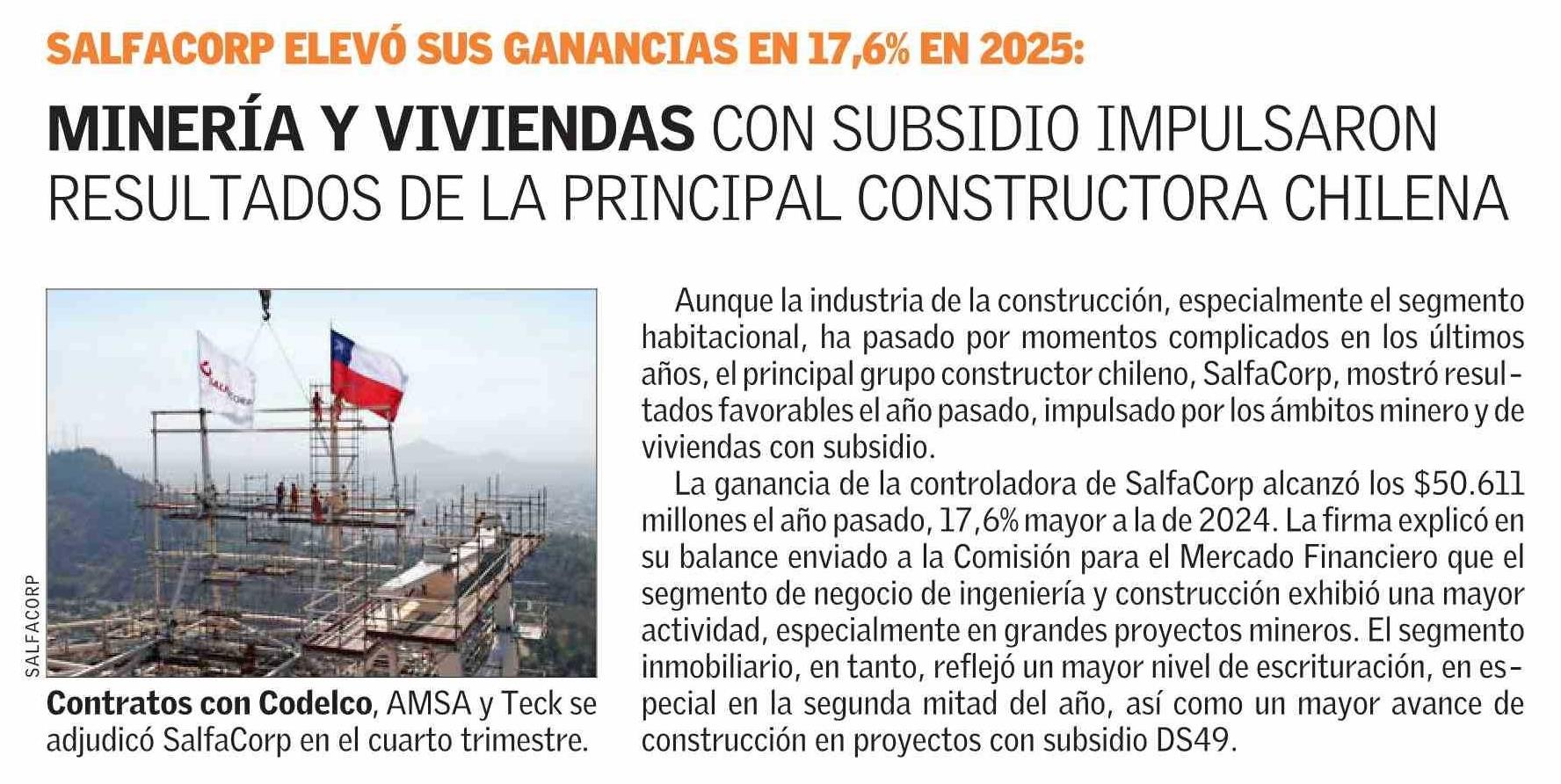 MINERÍA Y VIVIENDAS CON SUBSIDIO IMPULSARON RESULTADOS DE LA PRINCIPAL CONSTRUCTORA CHILENA
