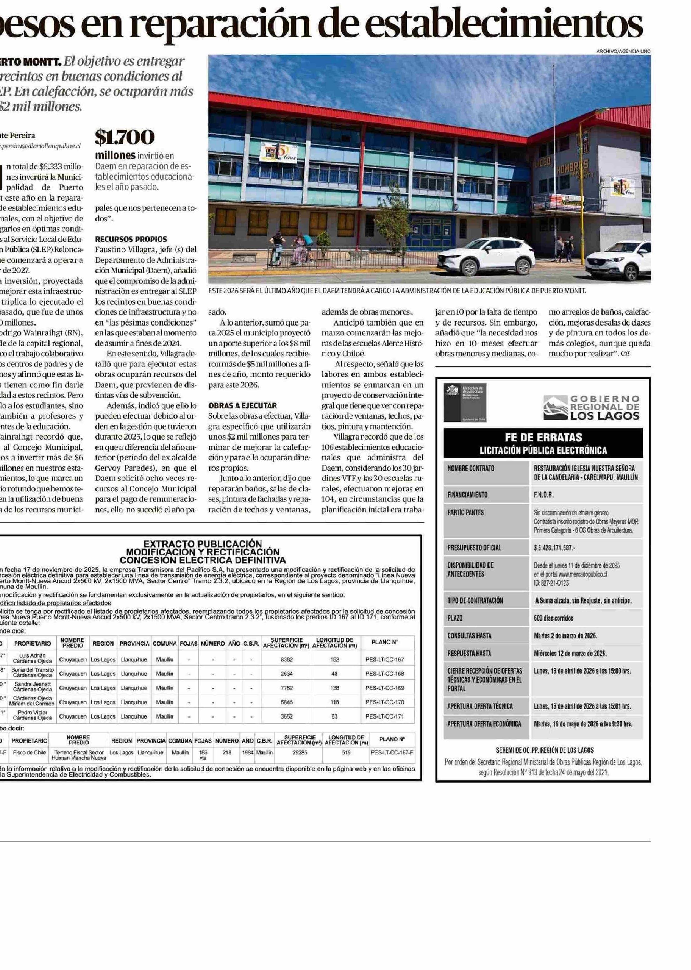 Invertirán más de seis mil millones de pesos en reparación de establecimientos