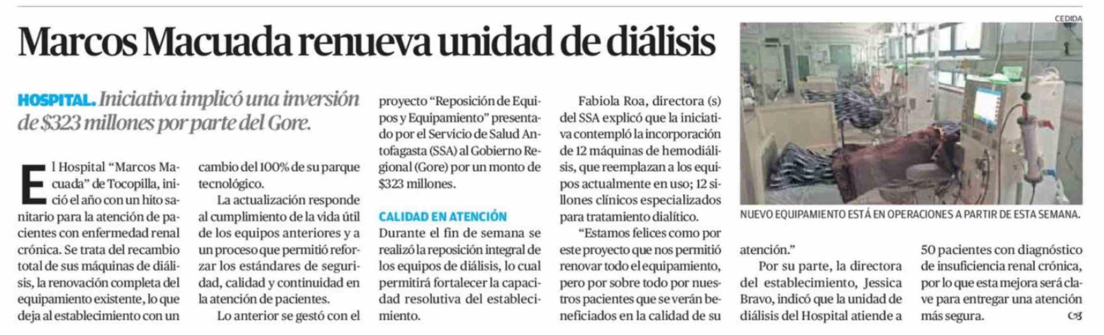 Marcos Macuada renueva unidad de diálisis