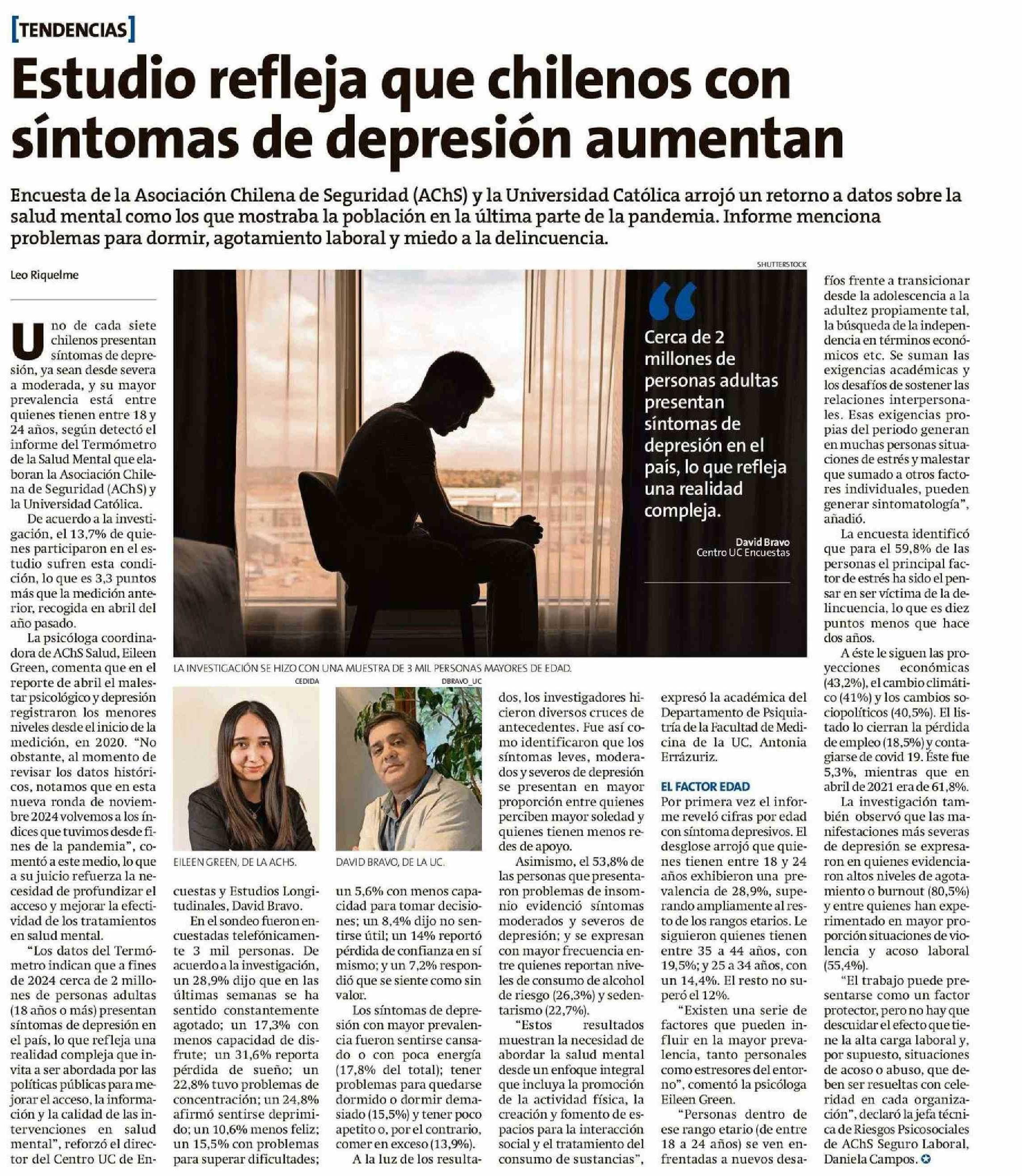 Estudio refleja que chilenos con sintomas de depresión aumentan
