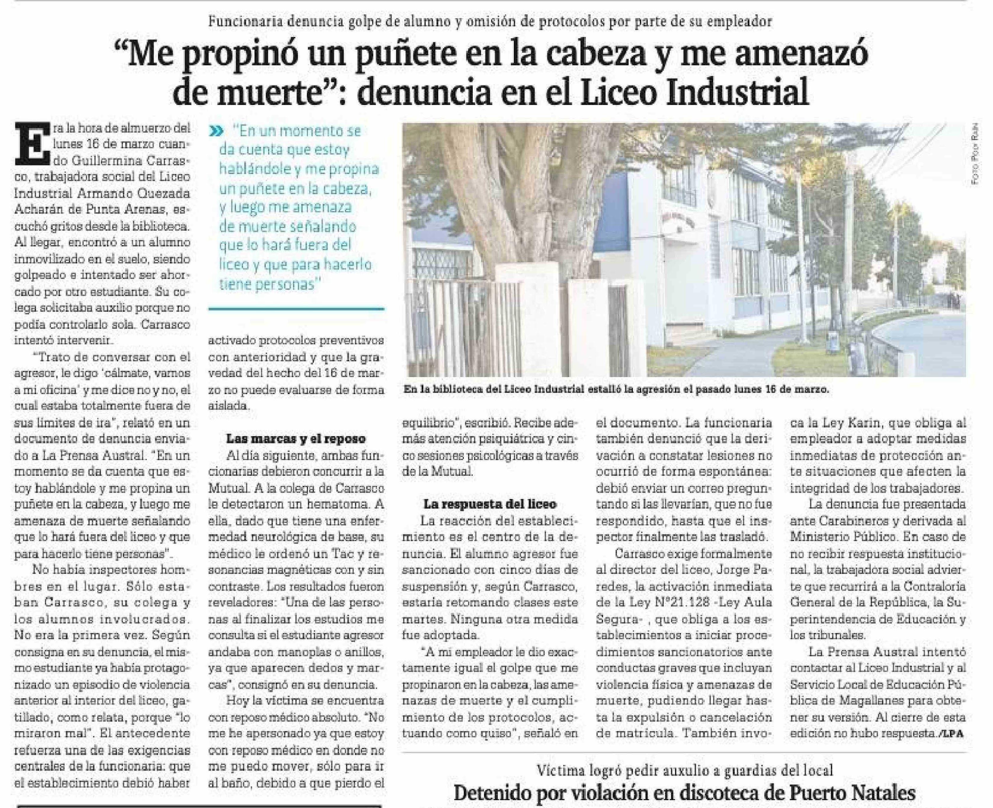 "Me propinó un puñete en la cabeza y me amenazó de muerte": denuncia en el Liceo Industrial