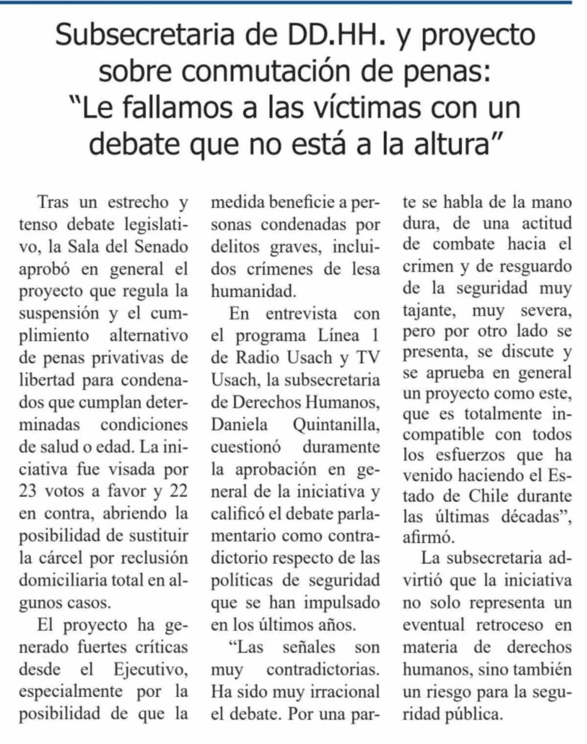 Subsecretaria de DD.HH. y proyecto sobre conmutación de penas: "Le fallamos a las víctimas con un debate que no está a la altura"