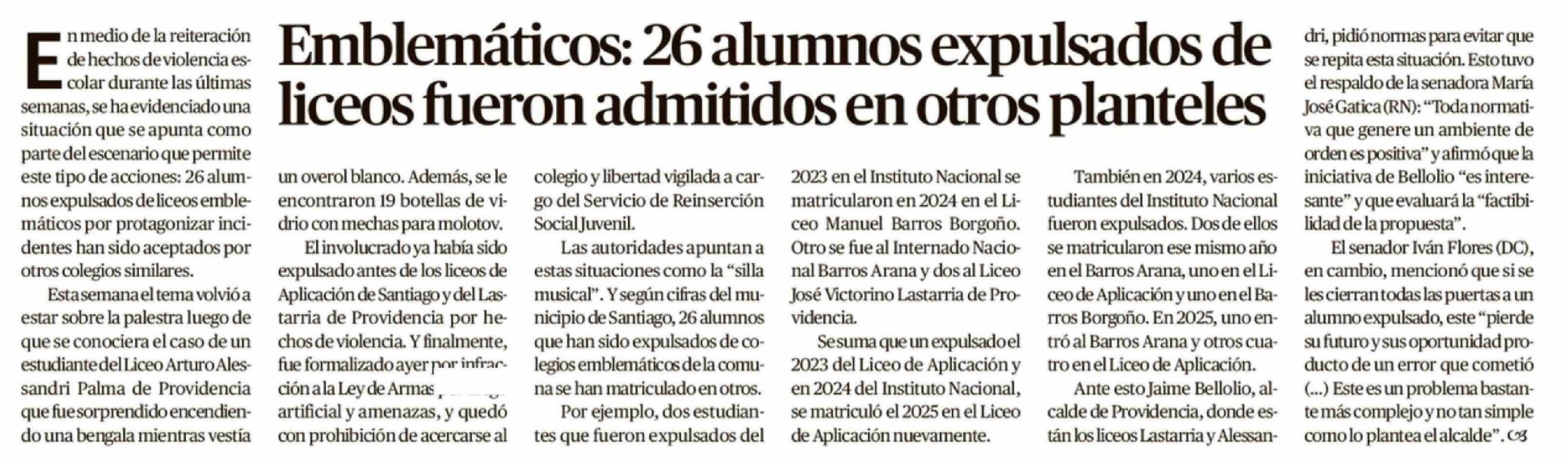Emblemáticos: 26 alumnos expulsados de liceos fueron admitidos en otros planteles