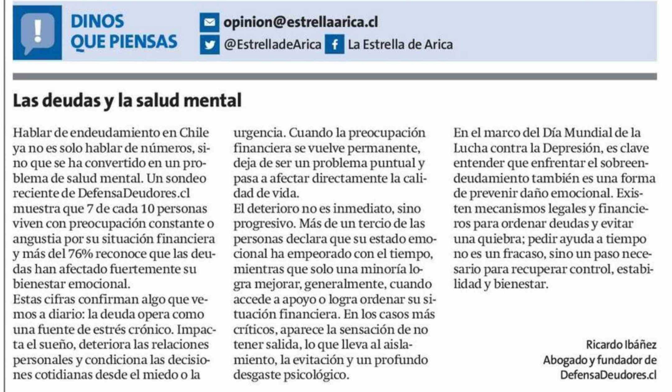 Columnas de Opinión: Las deudas y la salud mental