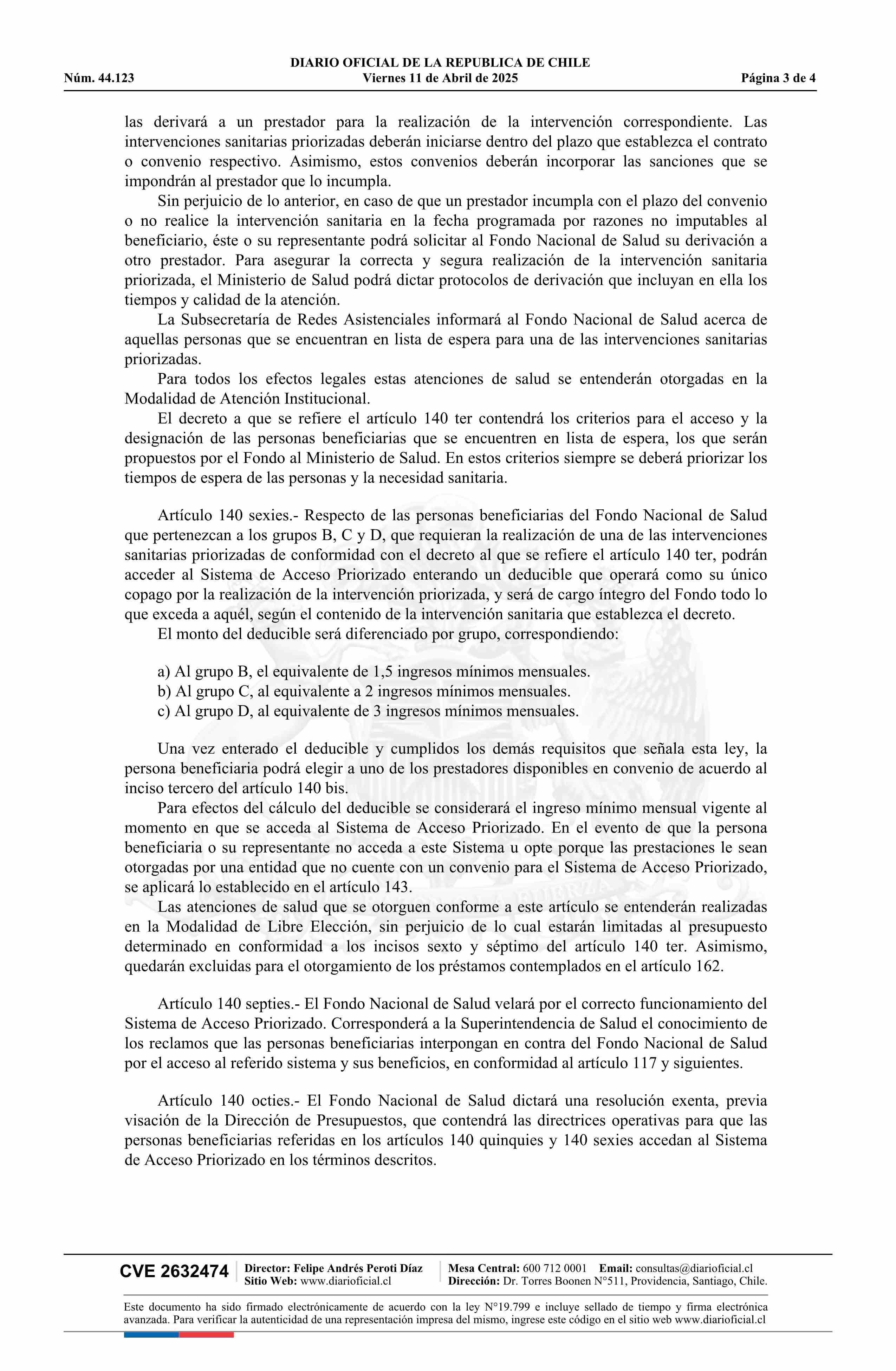 | Título: | Ley número 21.736.- Crea el Sistema de Acceso Priorizado del Fondo Nacional de Salud y modifica el decreto con fuerza de ley Nº 1, de 2005, del Ministerio de Salud |