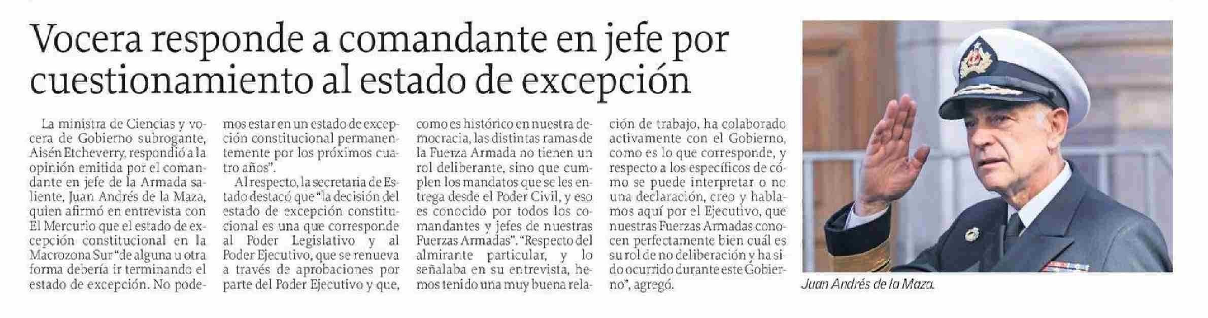 Vocera responde a comandante en jefe por cuestionamiento al estado de excepción