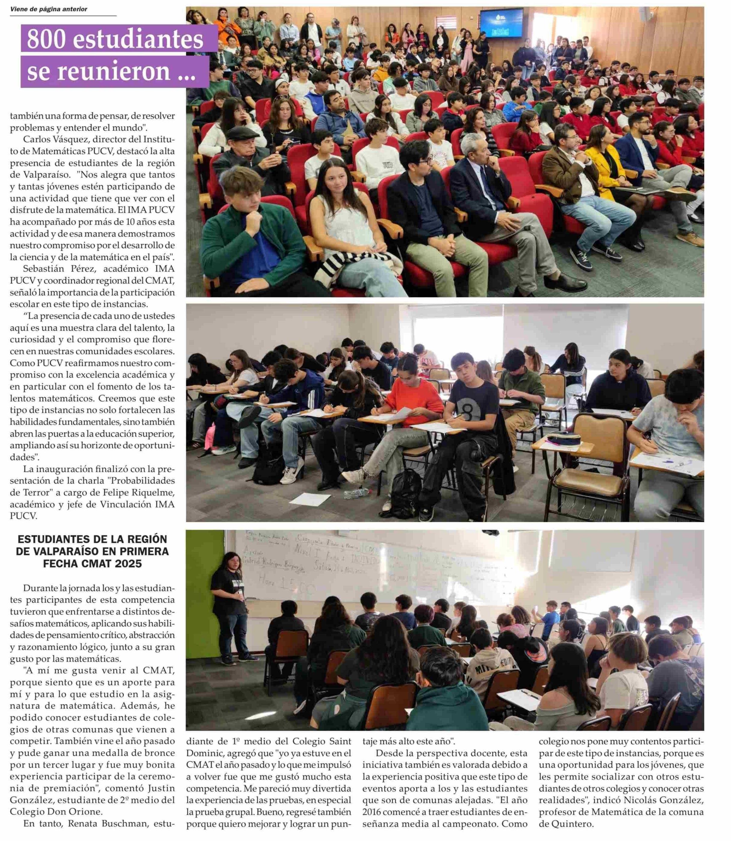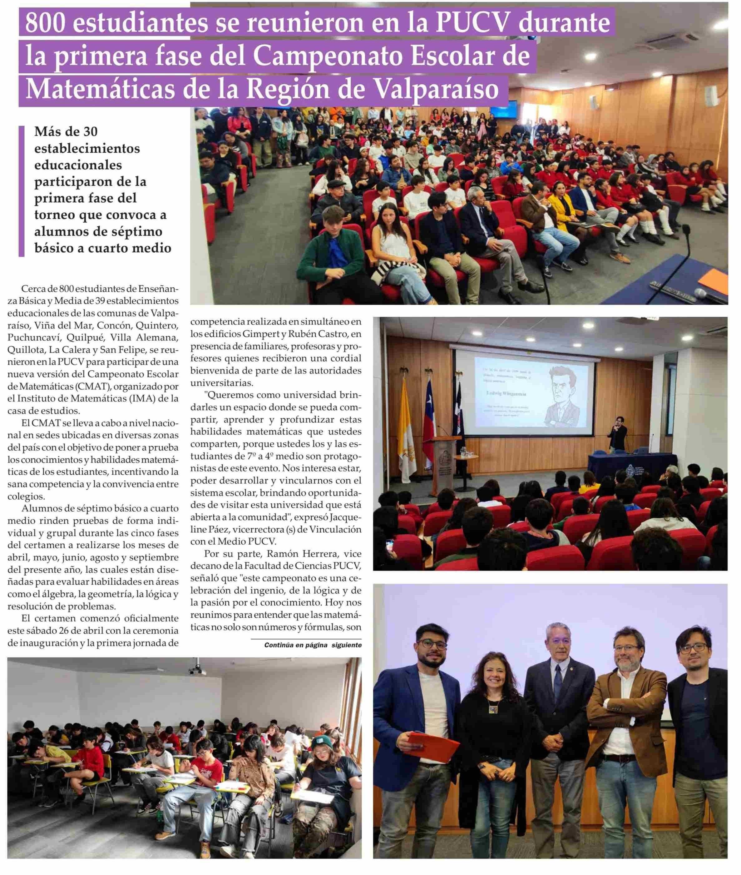 800 estudiantes se reunieron en la PUCV durante la primera fase del Campeonato Escolar Matemticas de la Región de Valparaiso
