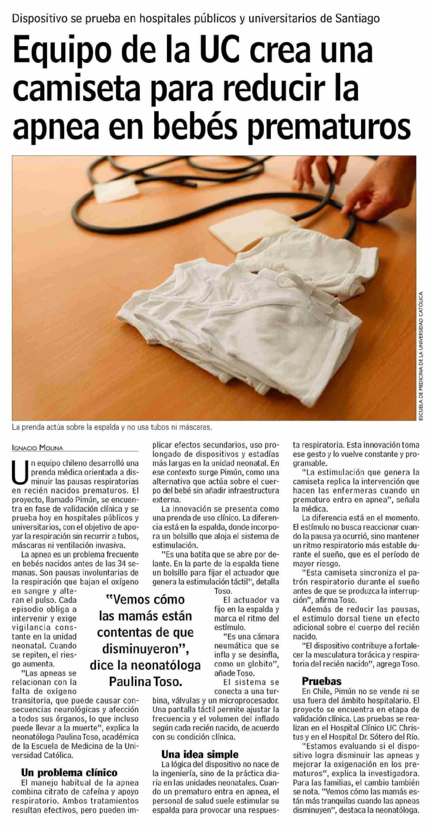 Equipo de la UC crea una camiseta para reducir la apnea en bebes prematuros