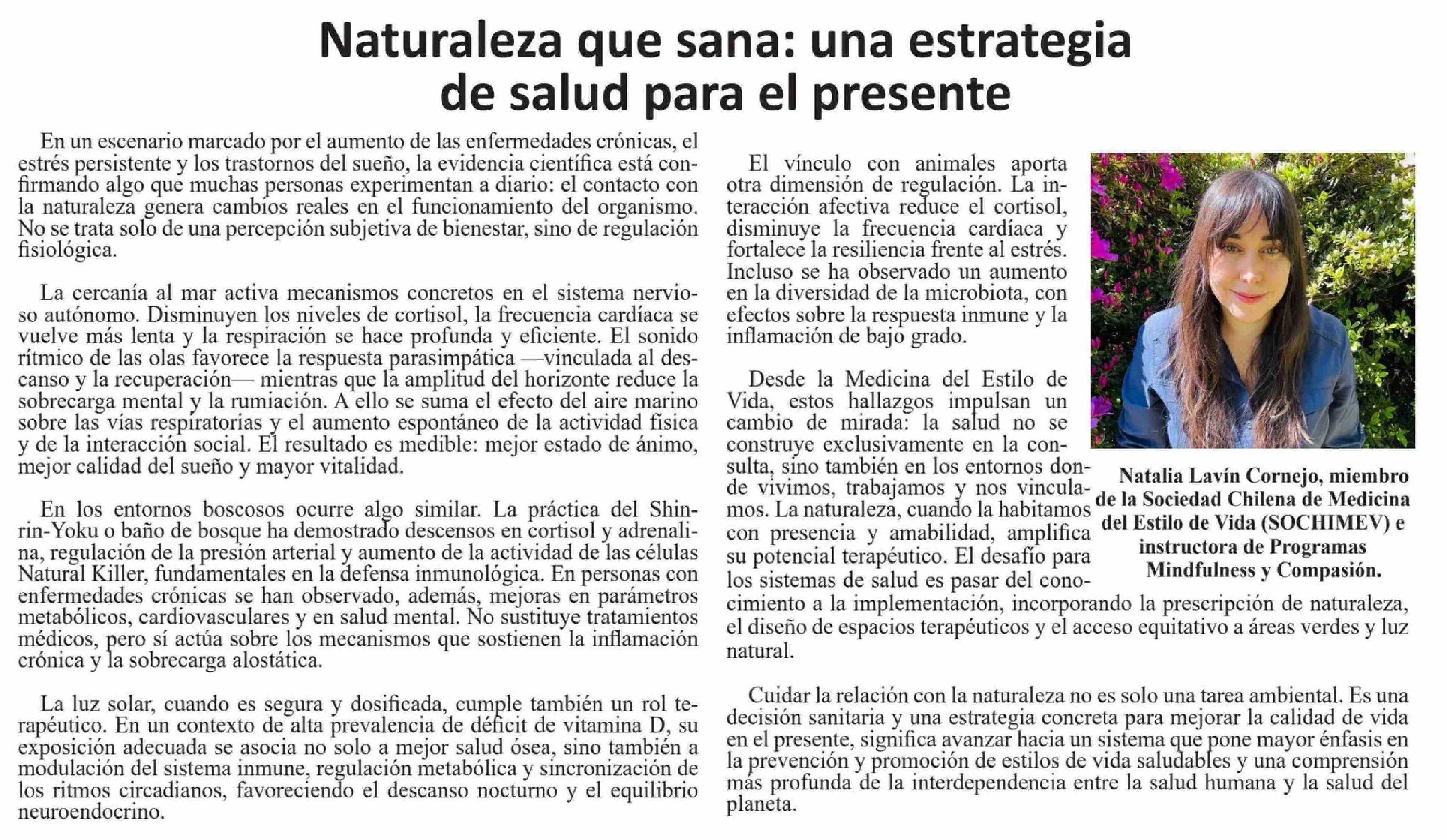Título: Columnas de Opinión: Naturaleza que sana: una estrategia de salud para el presente
