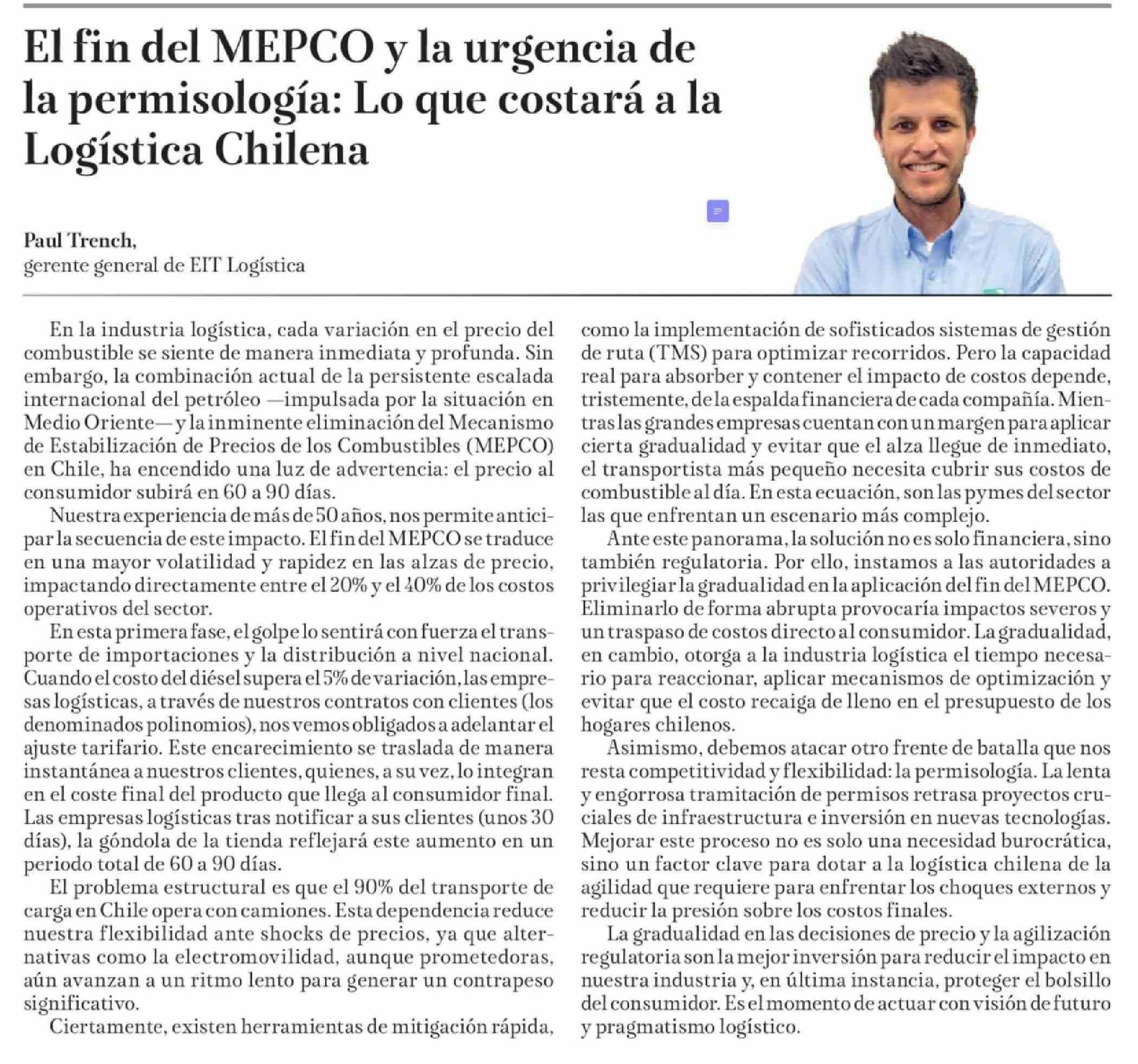 Columnas de Opinión: El fin del MEPCO y la urgencia de la permisología: Lo que costará a la Logística Chilena