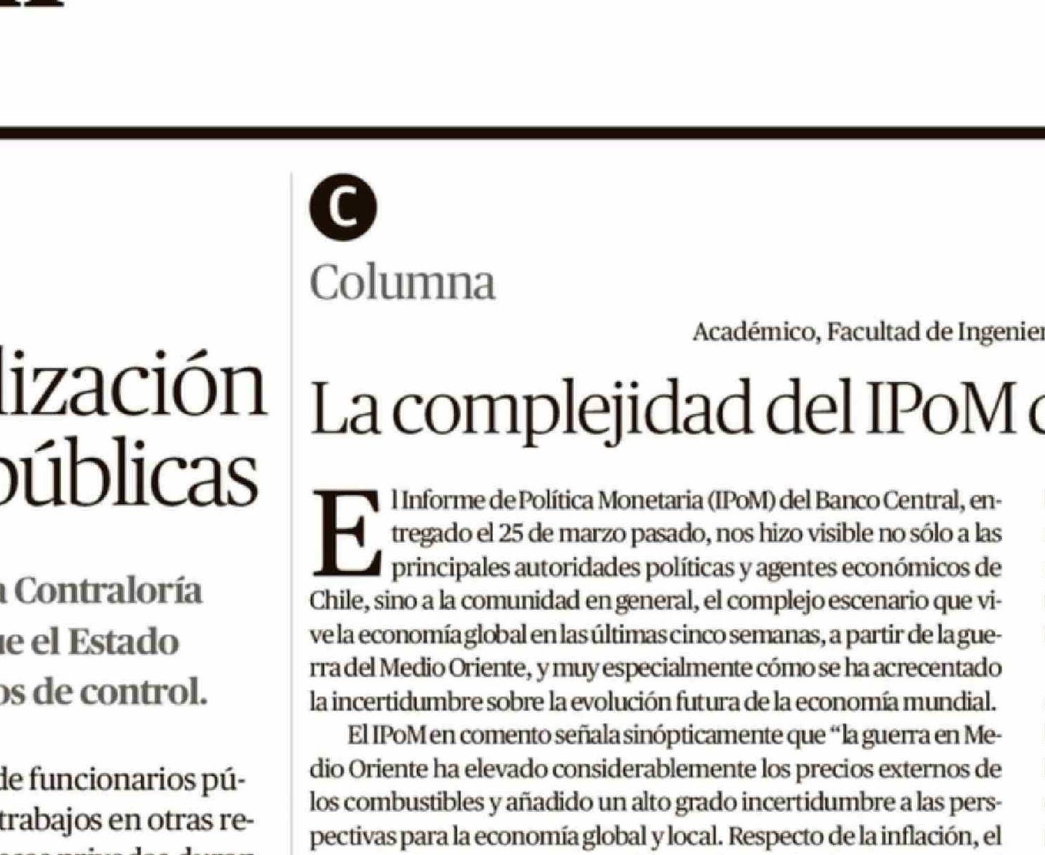Columnas de Opinión: La complejidad del IPOM de marzo
