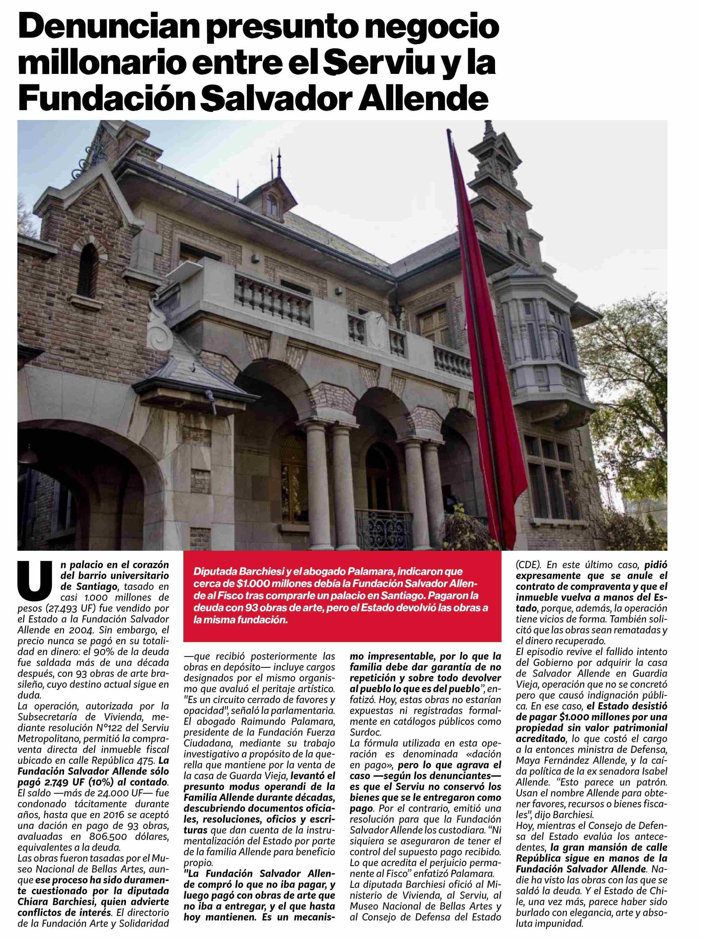 Denuncian presunto negocio millonario entre el Serviu y la Fundación Salvador Allende
