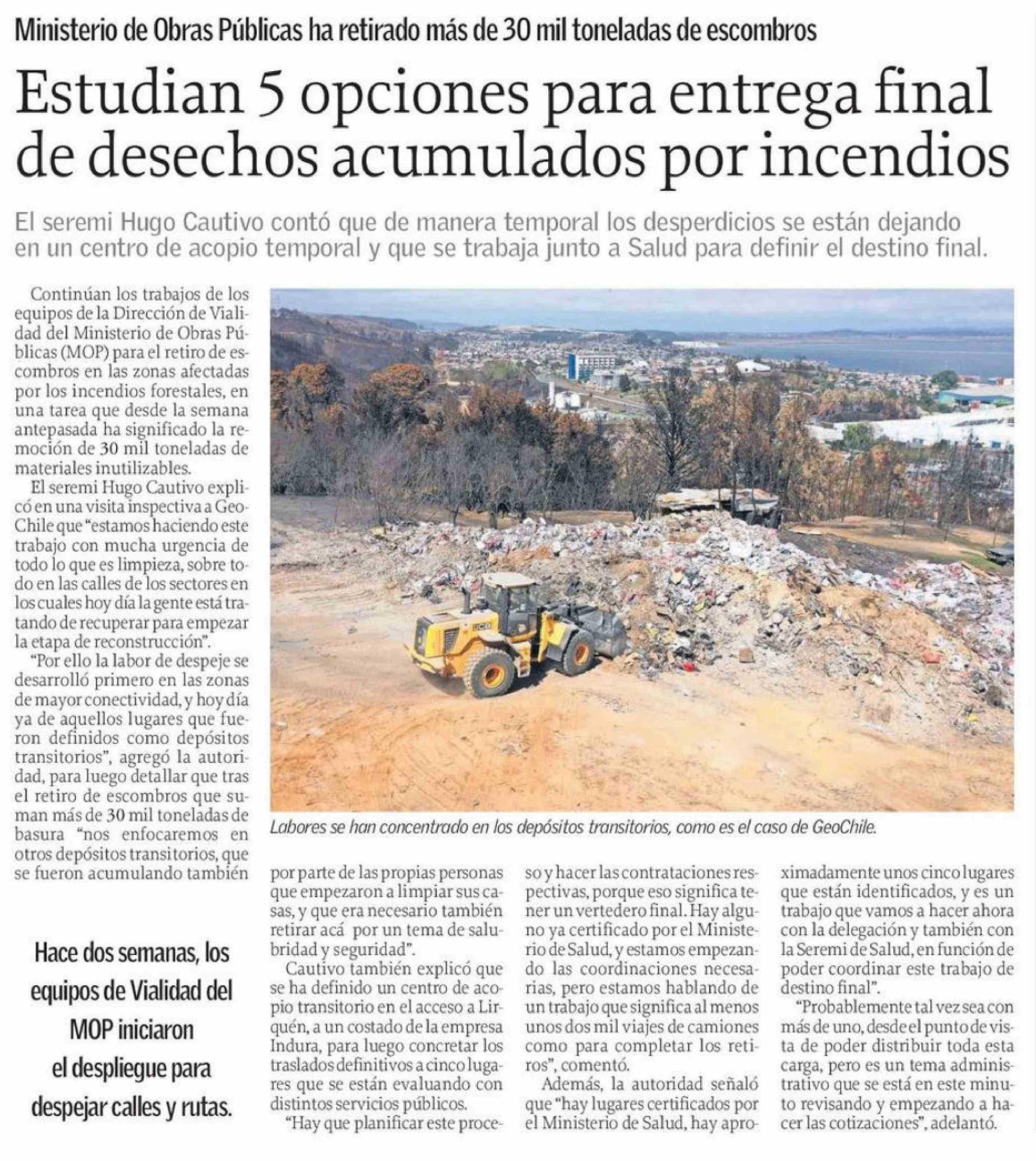 Estudian 5 opciones para entrega final de desechos acumulados por incendios