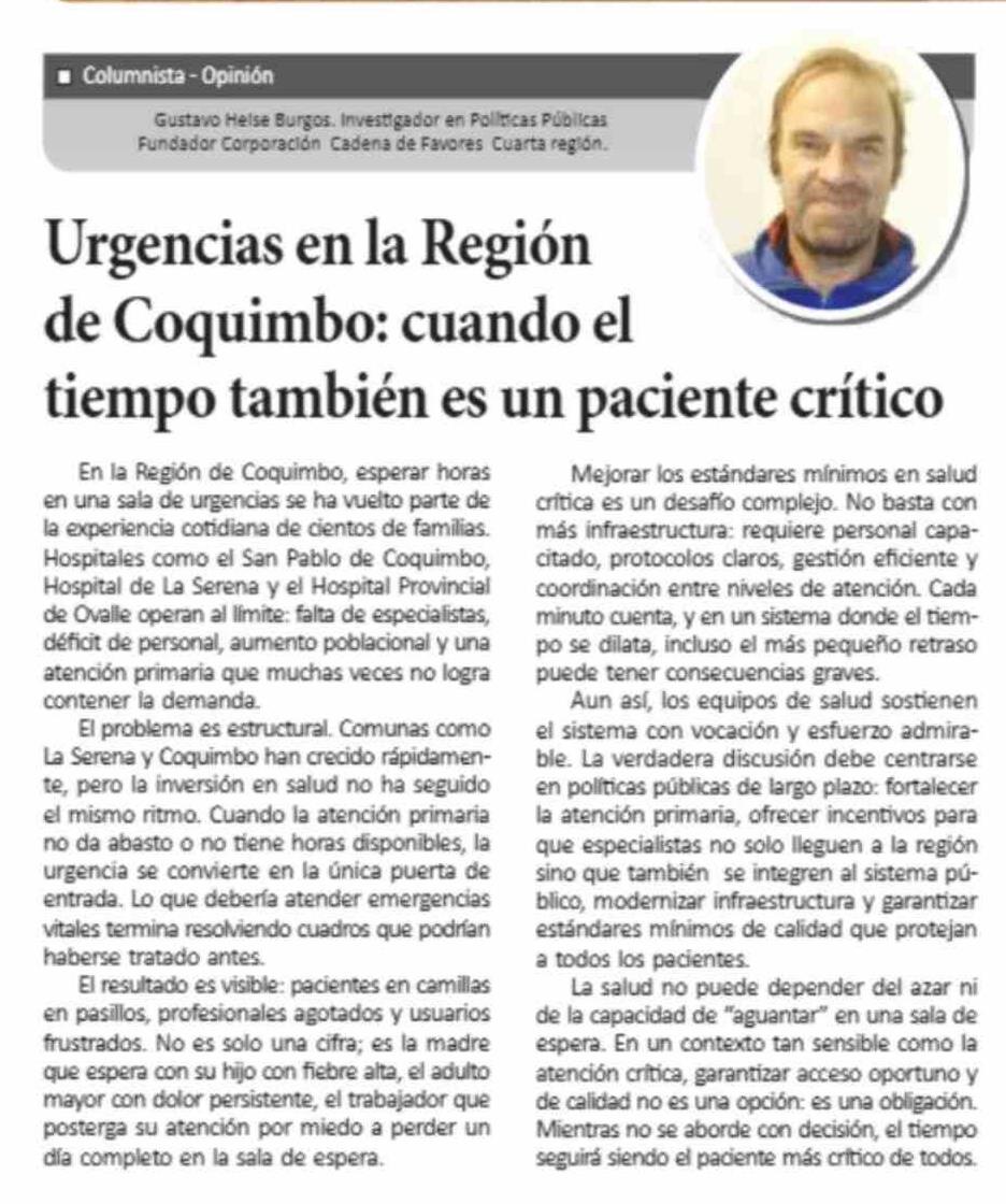 Título: Columnas de Opinión: Urgencias en la Región de Coquimbo: cuando el tiempo también es un paciente crítico