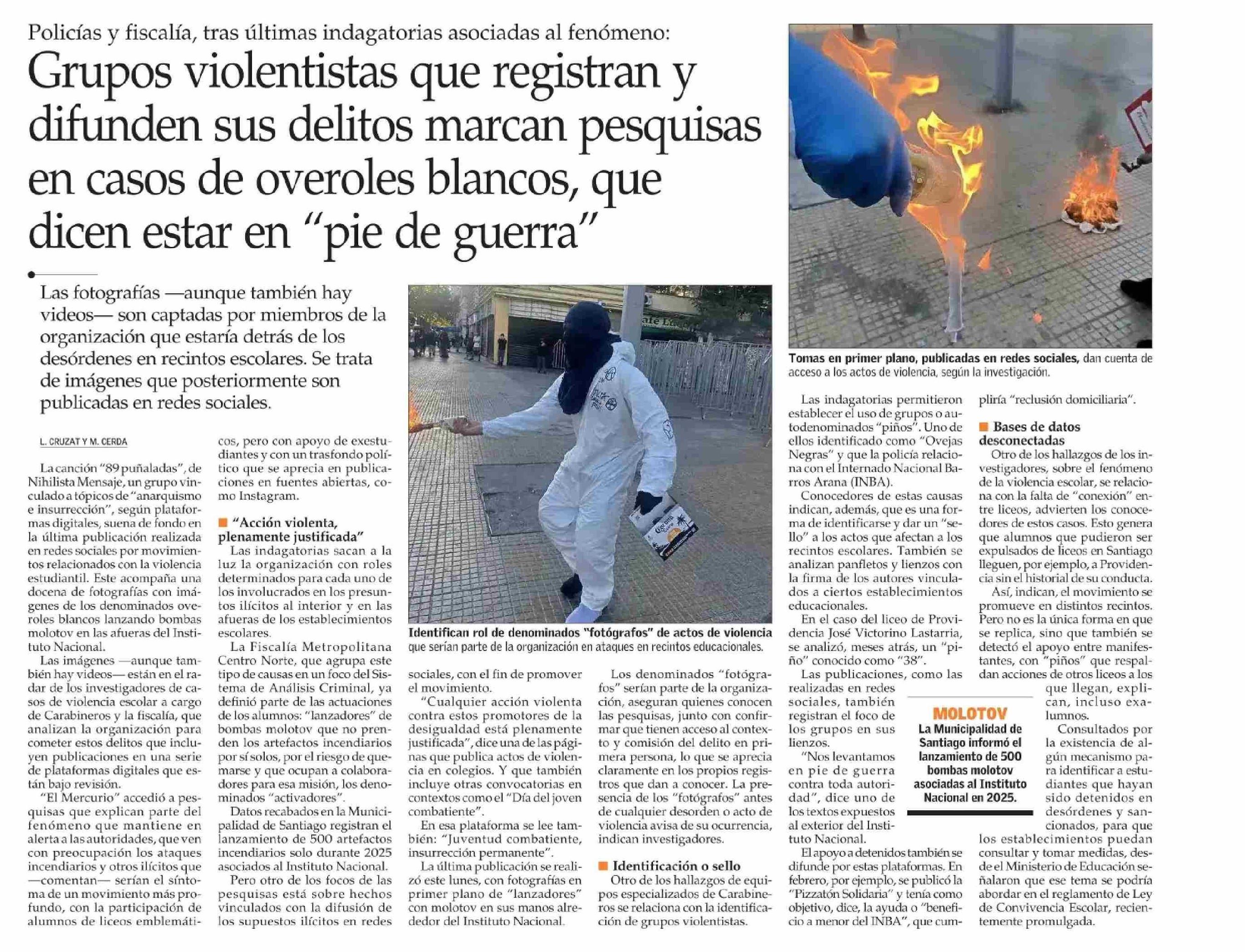 | Título: | Grupos violentistas que registran y difunden sus delitos marcan pesquisas en casos de overoles blancos, que dicen estar en “pie de guerra” |