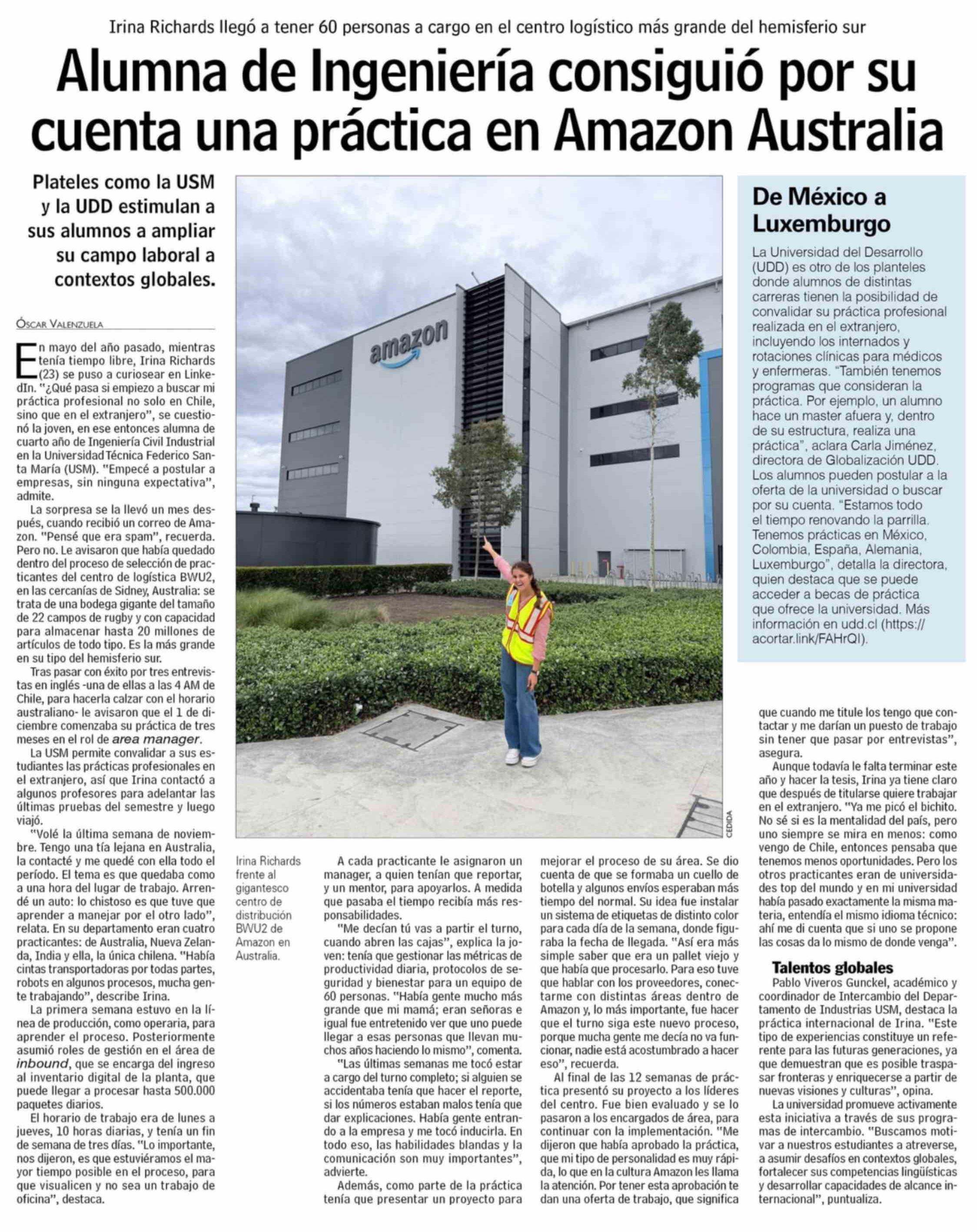 Alumna de Ingeniería consiguió por su cuenta una práctica en Amazon Australia