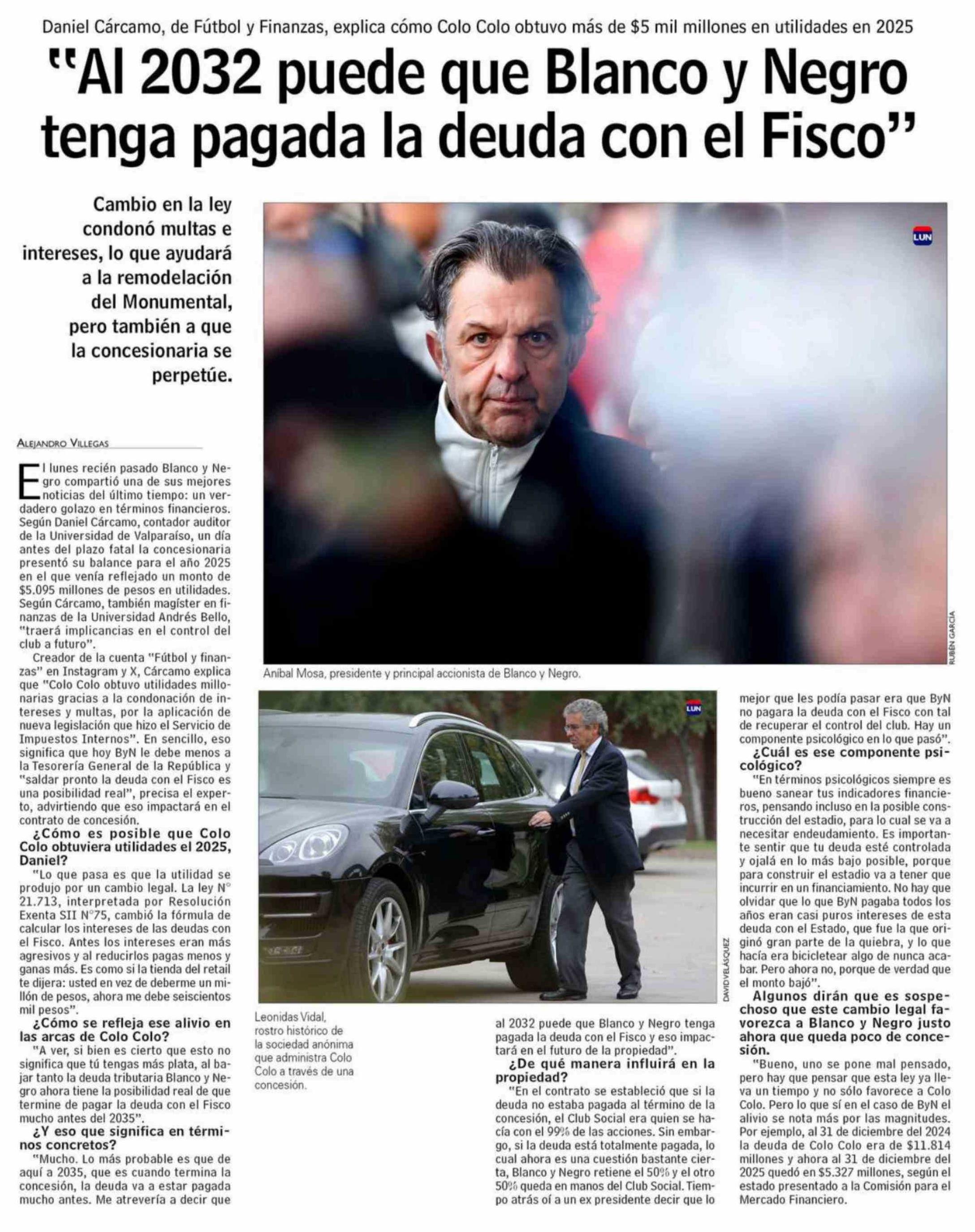 "Al 2032 puede que Blanco y Negro tenga pagada la deuda con el Fisco"