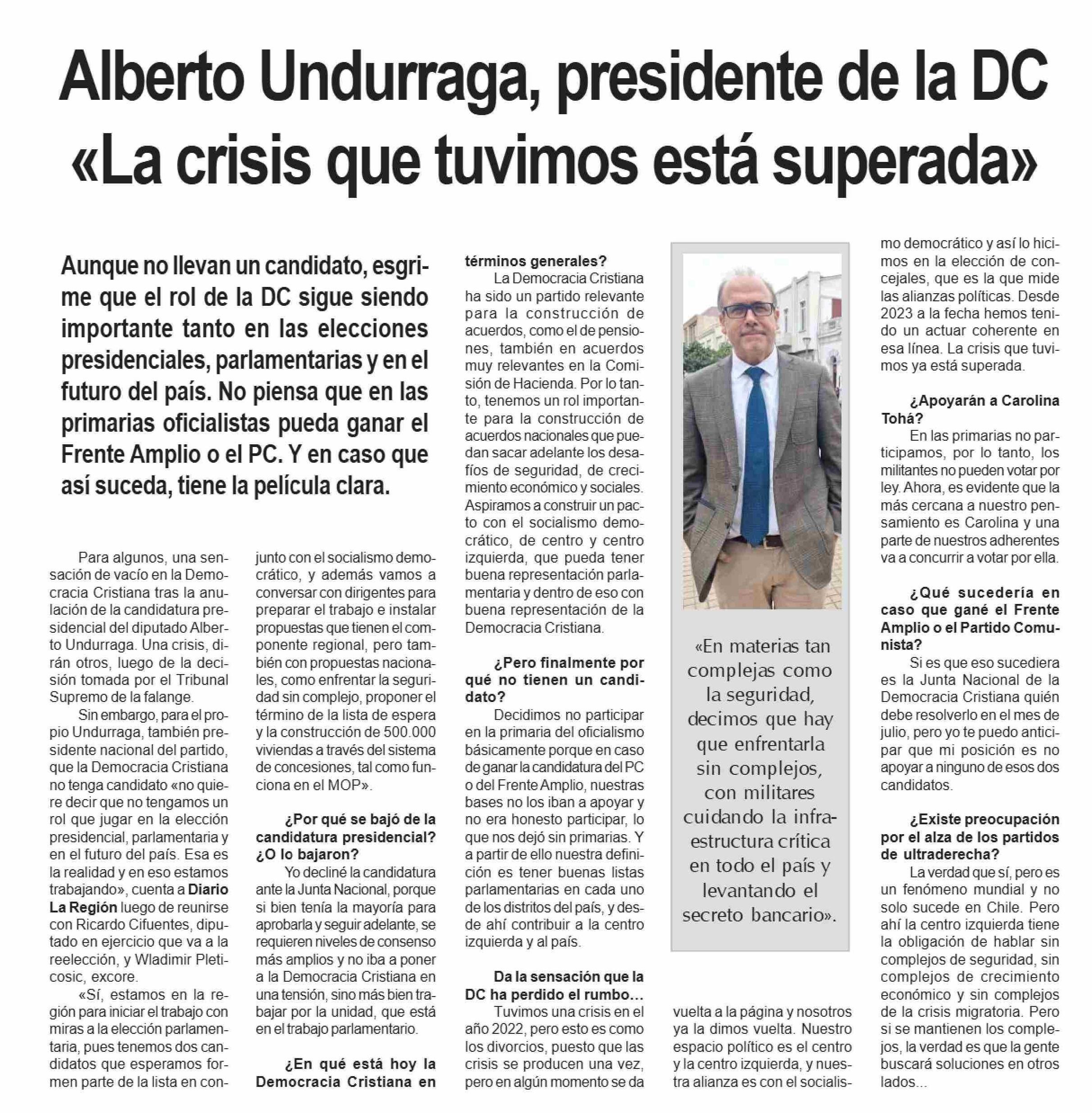Alberto Undurraga, presidente de la DC «La crisis que tuvimos está superada»