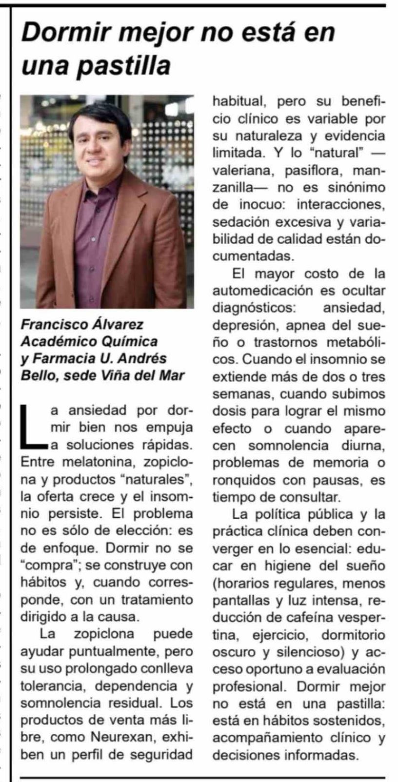 Columnas de Opinión: Dormir mejor no está en una pastilla