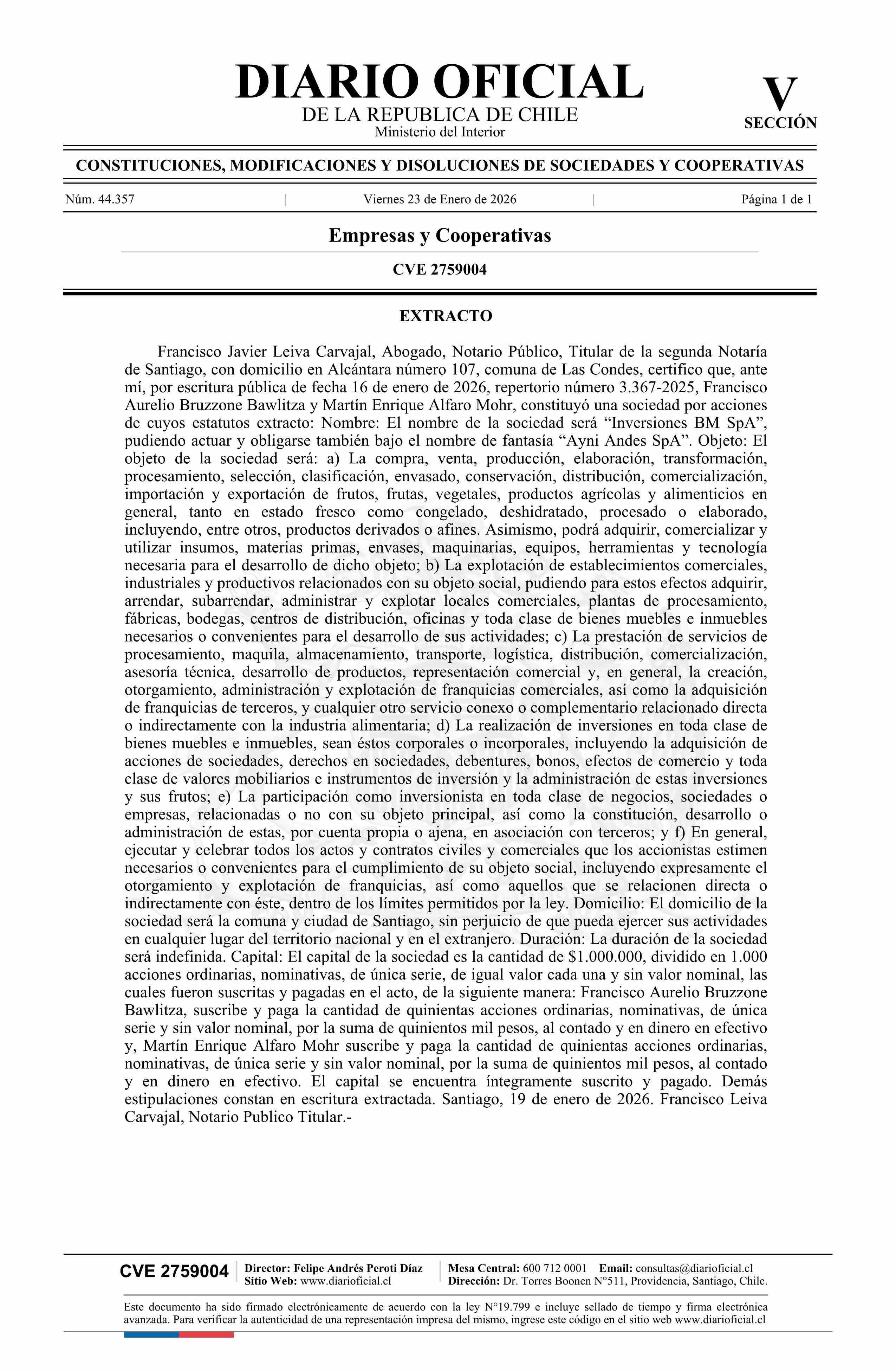 Diario Oficial Edición Electrónica (Diario Oficial de Chile - 5 Empresas Y Cooper)