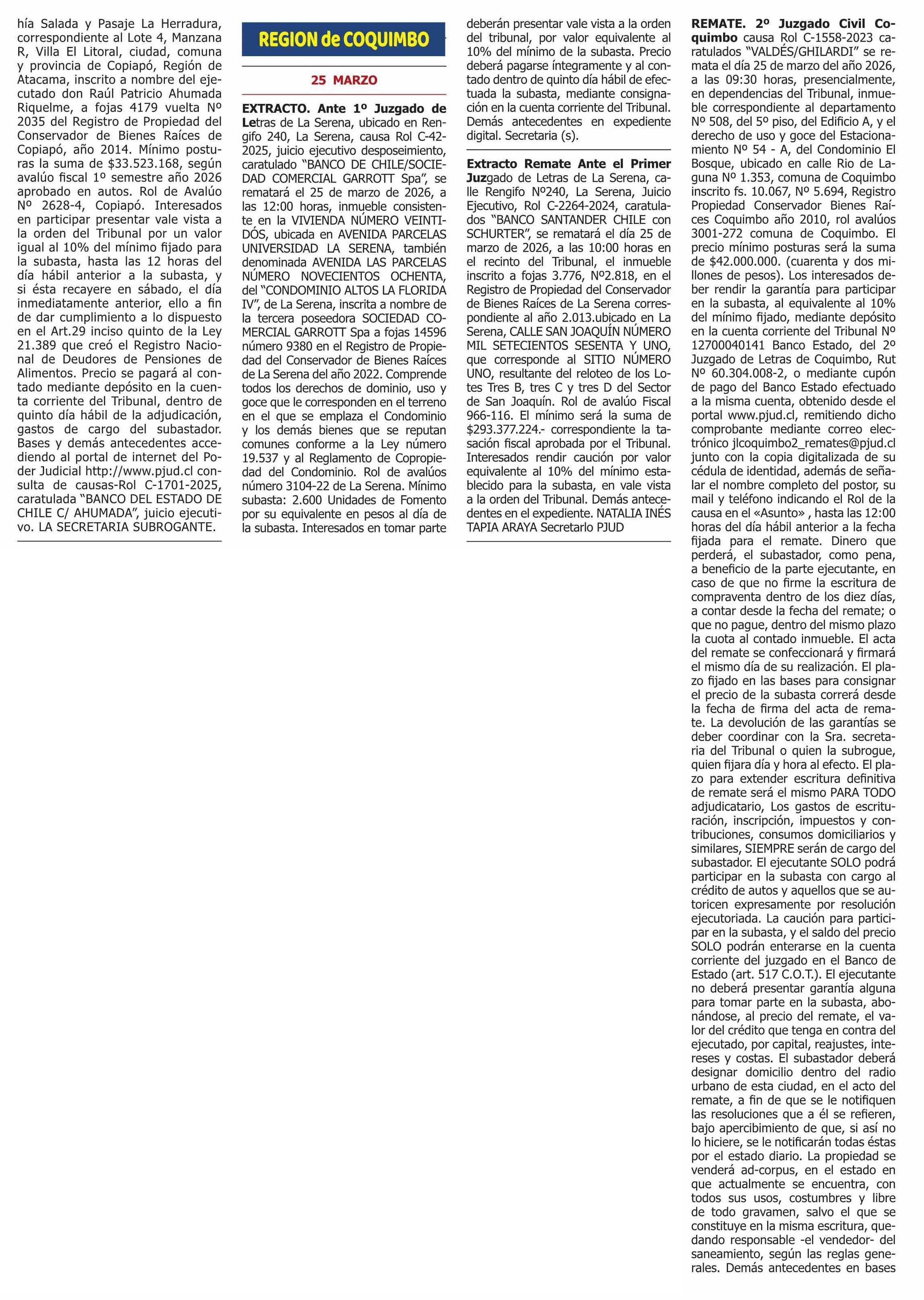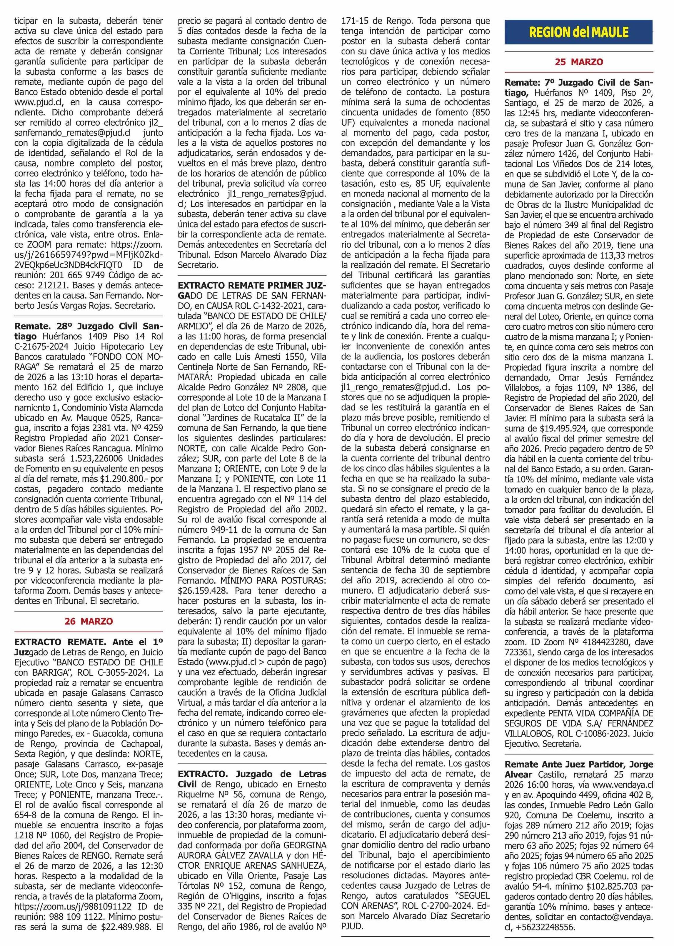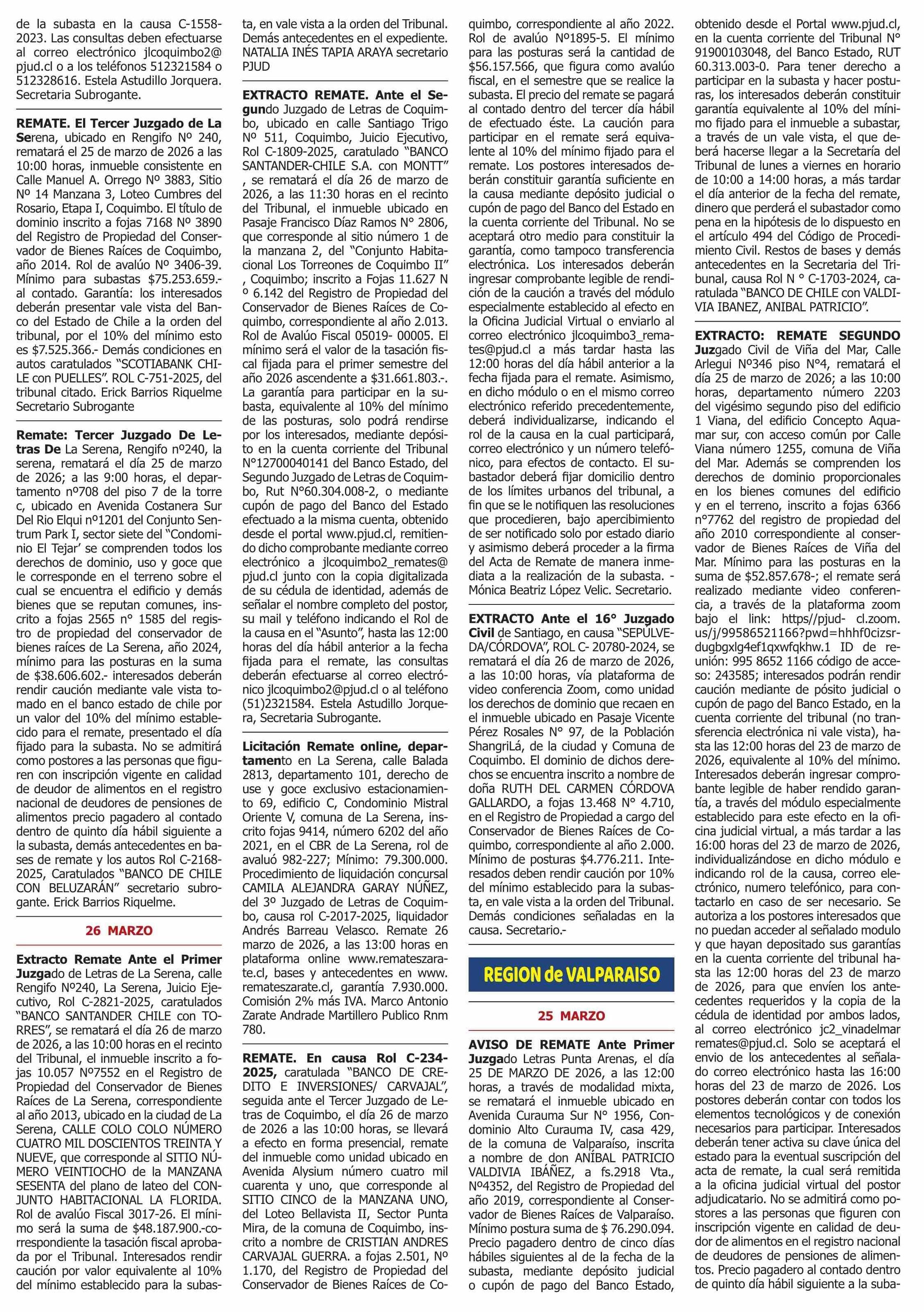 REMATES: REMATES de PROPIEDADES (ORDENADOS por REGIONES