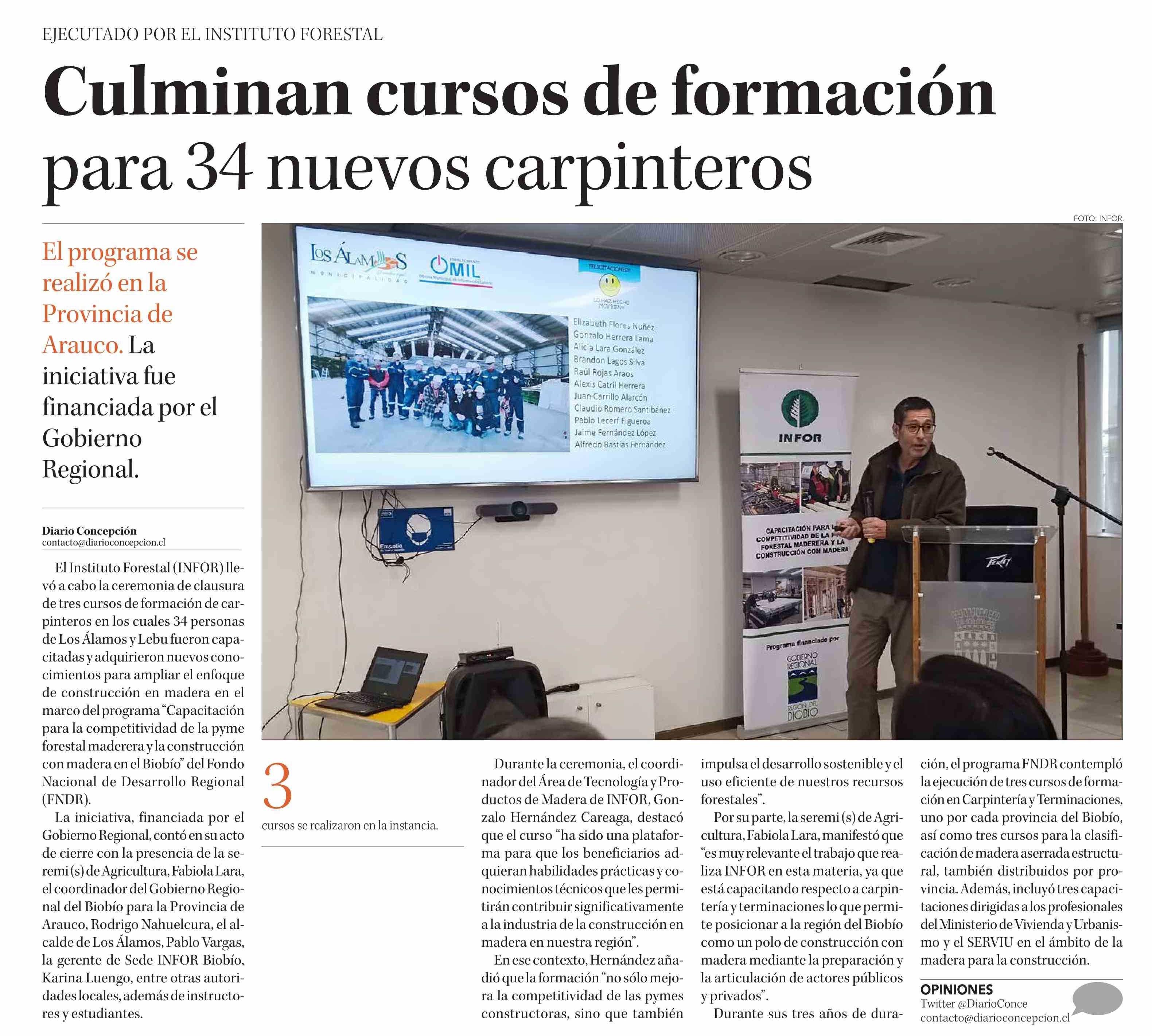 Culminan cursos de formación para 34 nuevos carpinteros