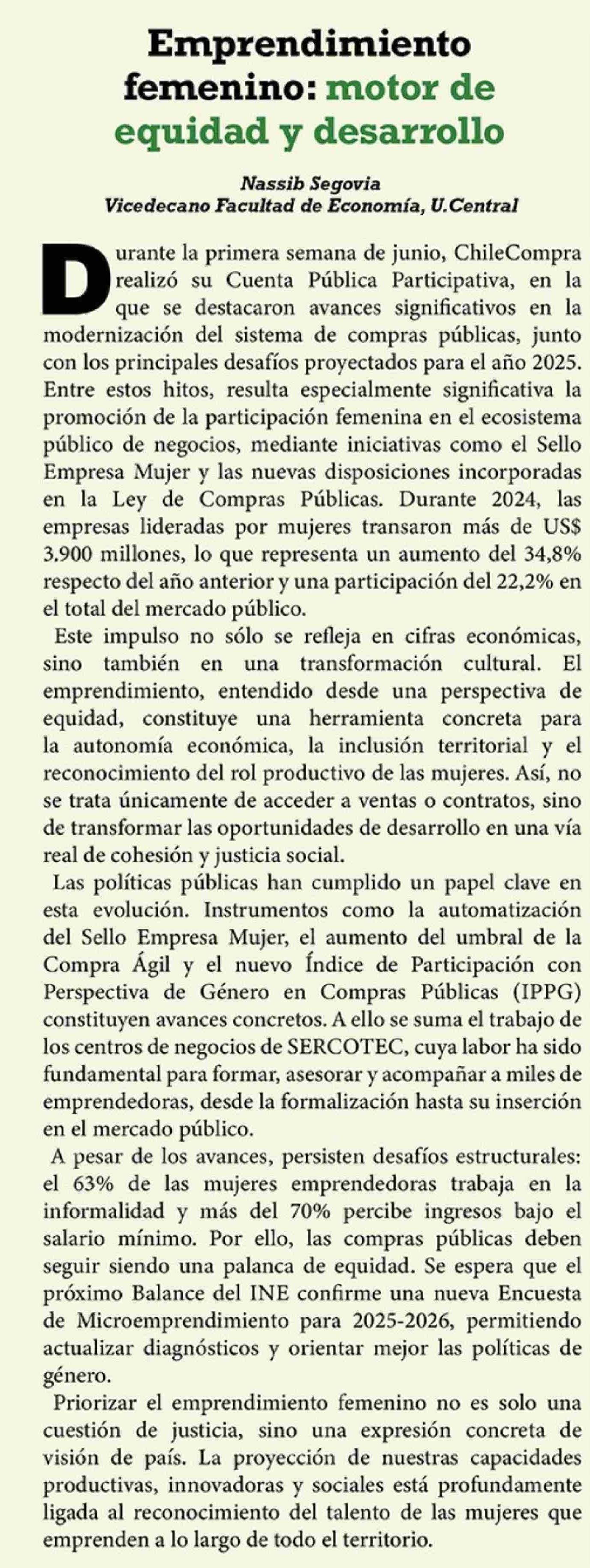 COLUMNAS DE OPINIÓN: Emprendimiento femenino: motor de equidad y desarrollo
