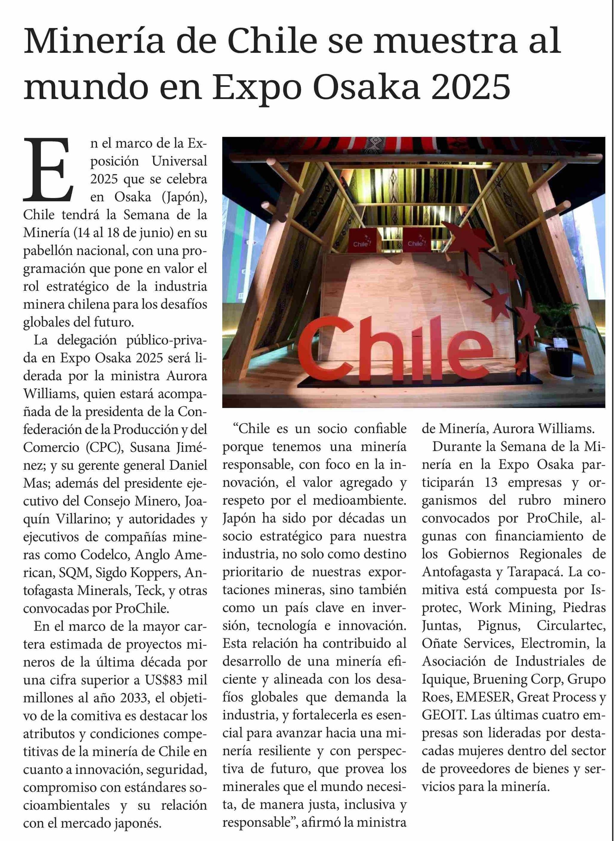 Minería de Chile se muestra al mundo en Expo Osaka 2025