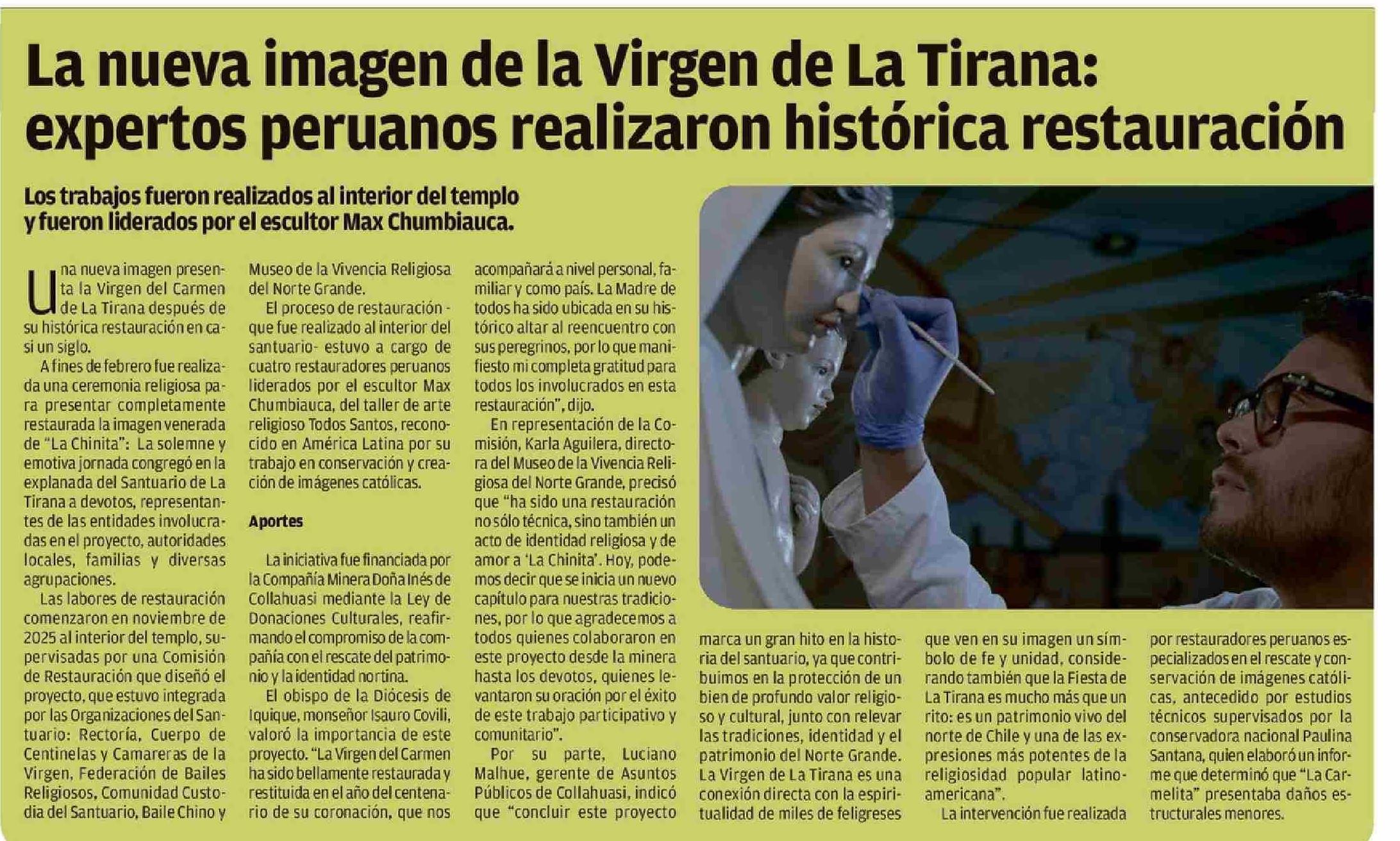 La nueva imagen de la Virgen de La Tirana: expertos peruanos realizaron histórica restauración