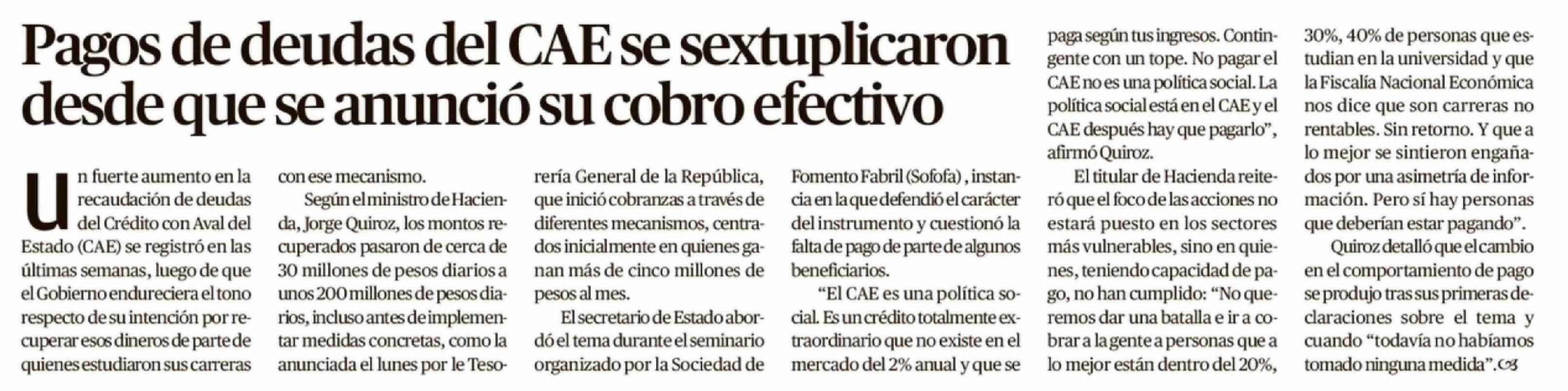 Pagos de deudas del CAE se sextuplicaron desde que se anunció su cobro efectivo