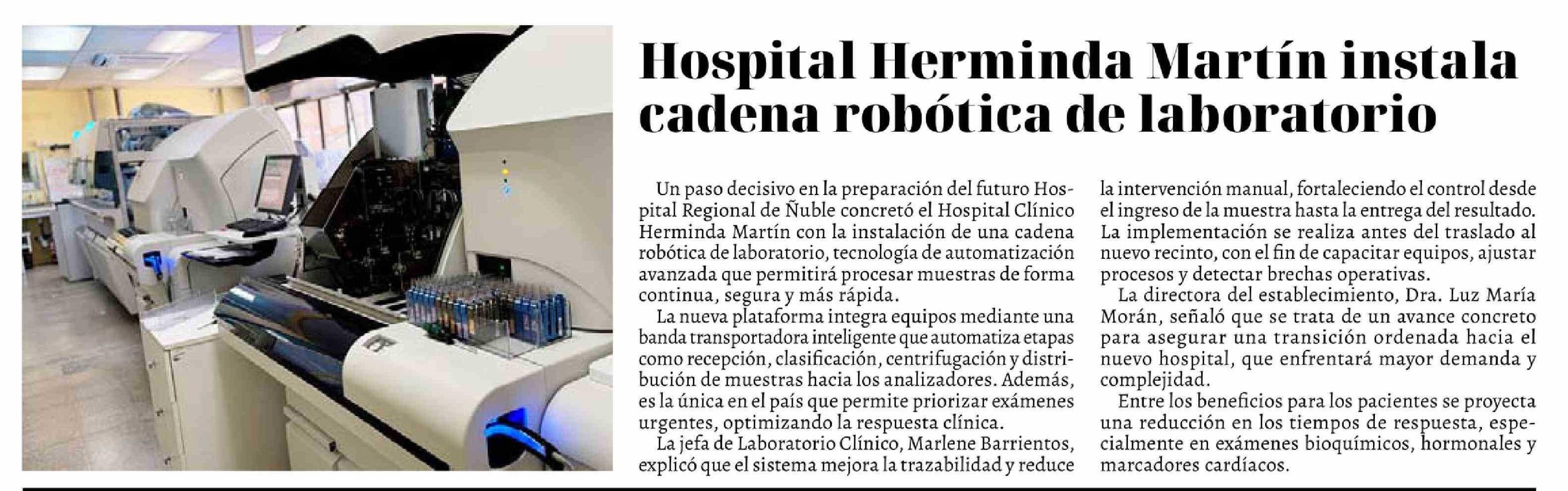 Hospital Herminda Martín instala cadena robótica de laboratorio