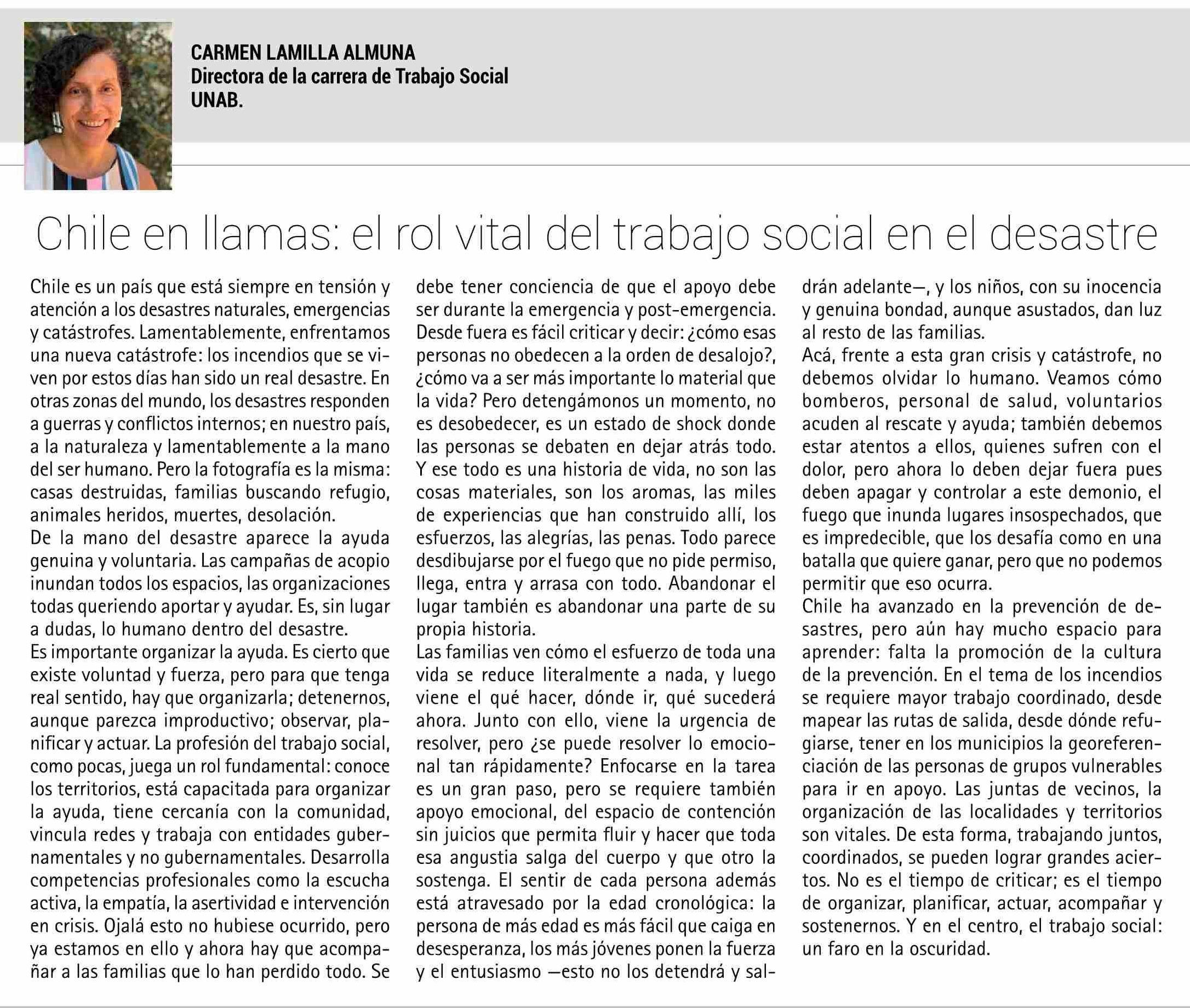 Columnas de Opinión: Chile en llamas: el rol vital del trabajo social en el desastre