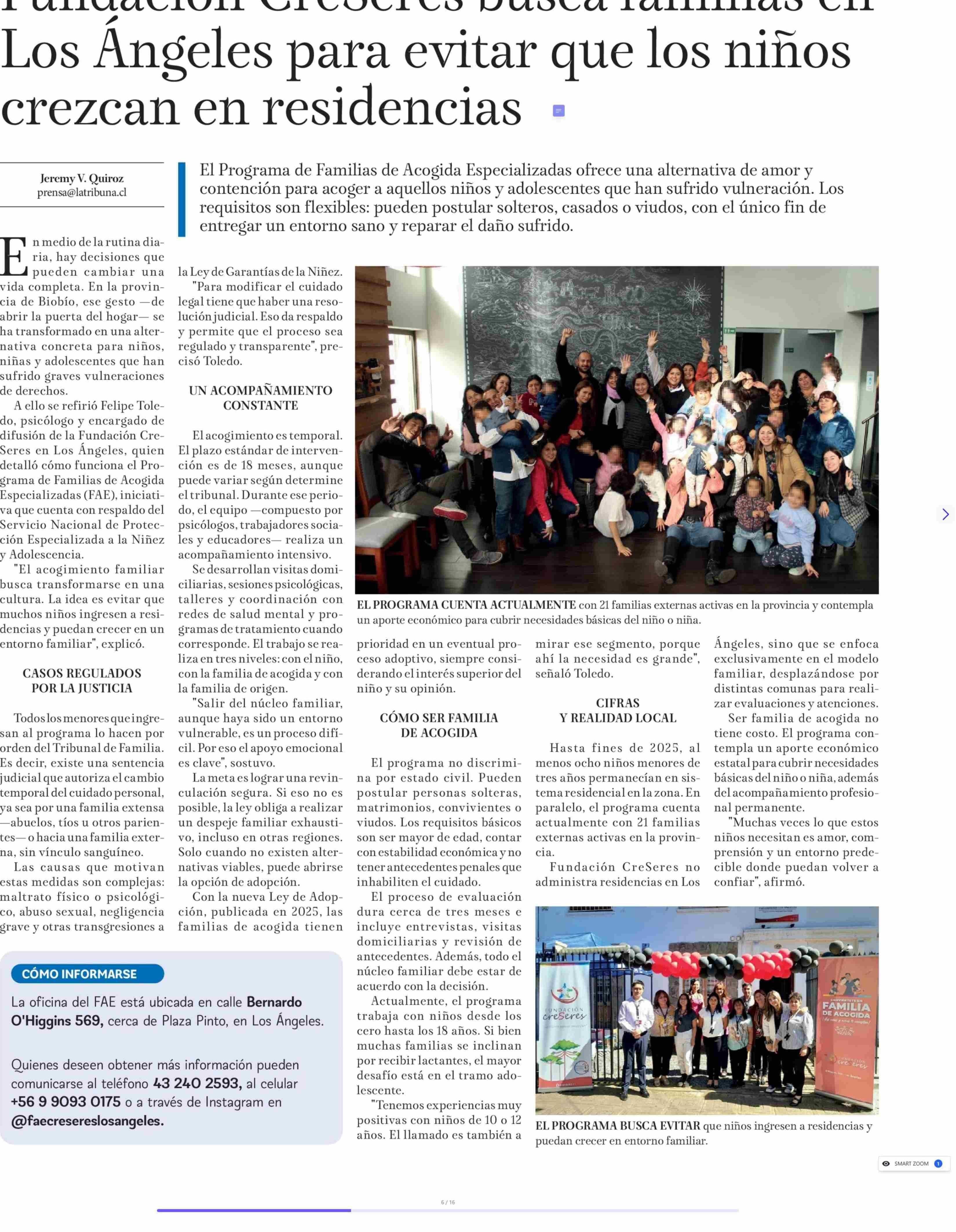 Fundación CreSeres busca familias en Los Ángeles para evitar que los niños crezcan en residencias