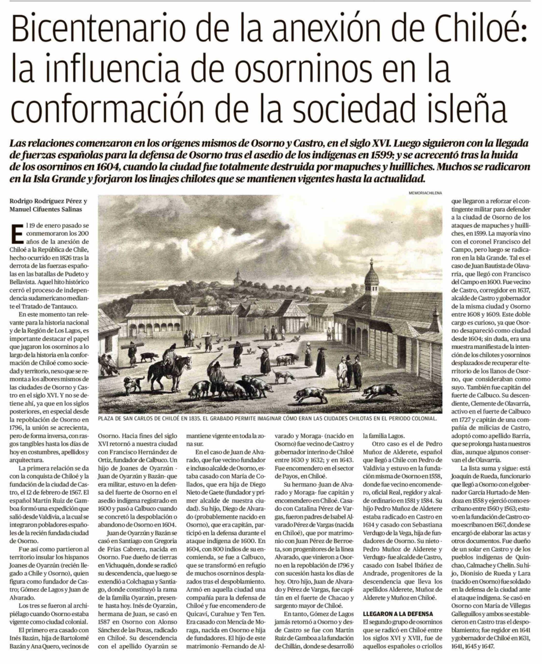 Bicentenario de la anexión de Chiloé: la influencia de osorninos en la conformación de la sociedad isleña