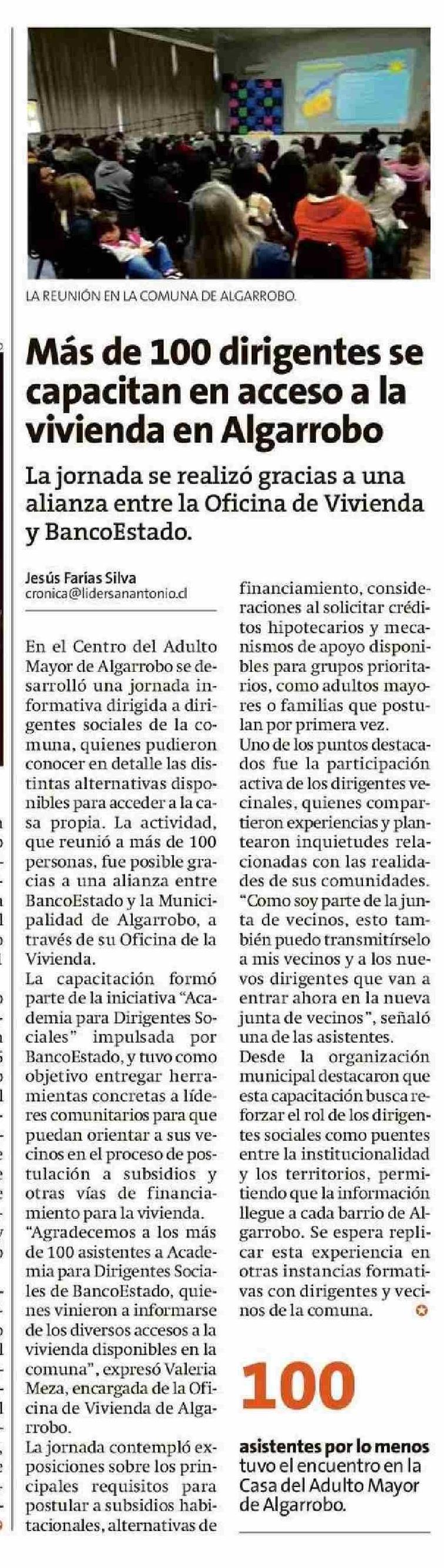 Más de 100 dirigentes se capacitan en acceso a la vivienda en Algarrobo