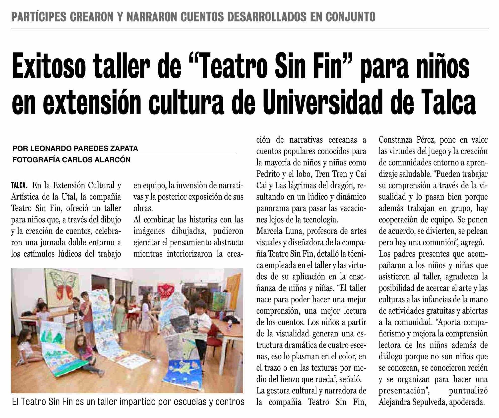 Exitoso taller de "Teatro Sin Fin" para niños en extensión cultura de Universidad de Talca