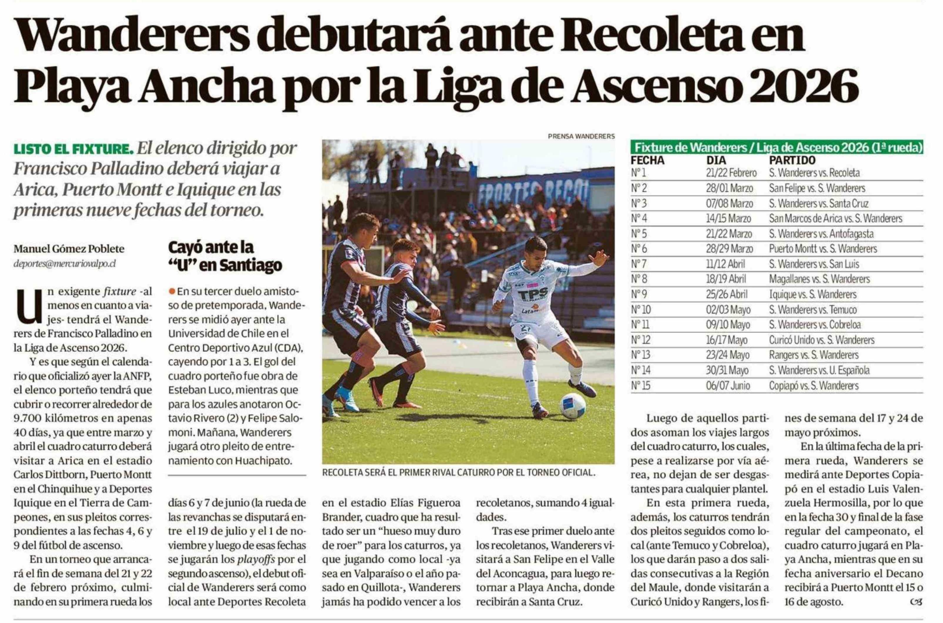 Wanderers debutará ante Recoleta en Playa Ancha por la Liga de Ascenso 2026