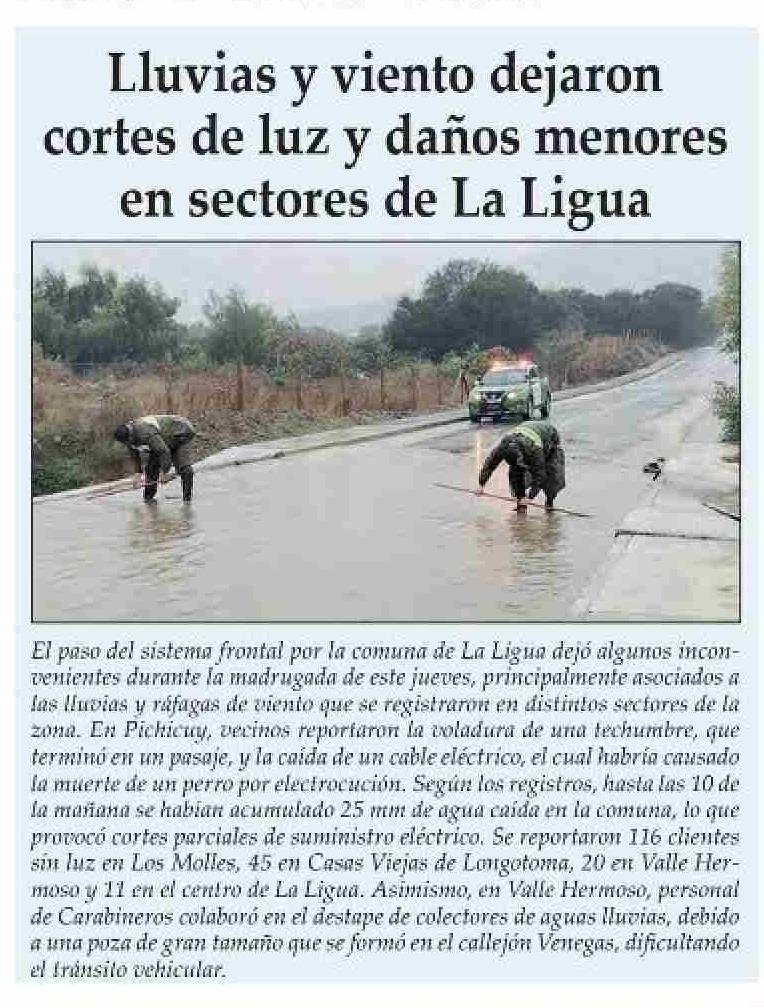 Lluvias y viento dejaron en sectores de La Ligua cortes de luz y daños menores
