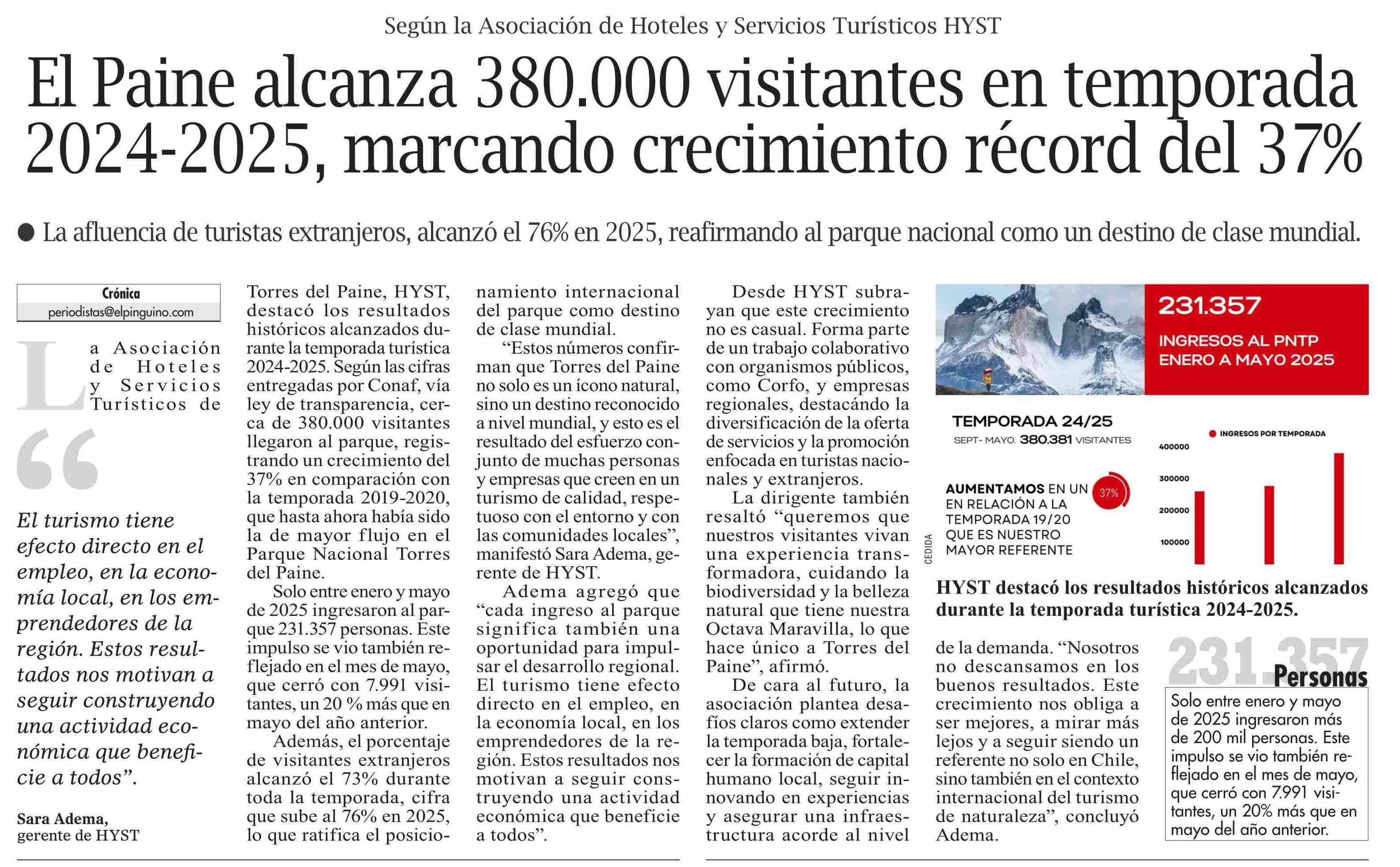 El Paine alcanza 380.000 visitantes en temporada 2024-2025, marcando crecimiento récord del 37%