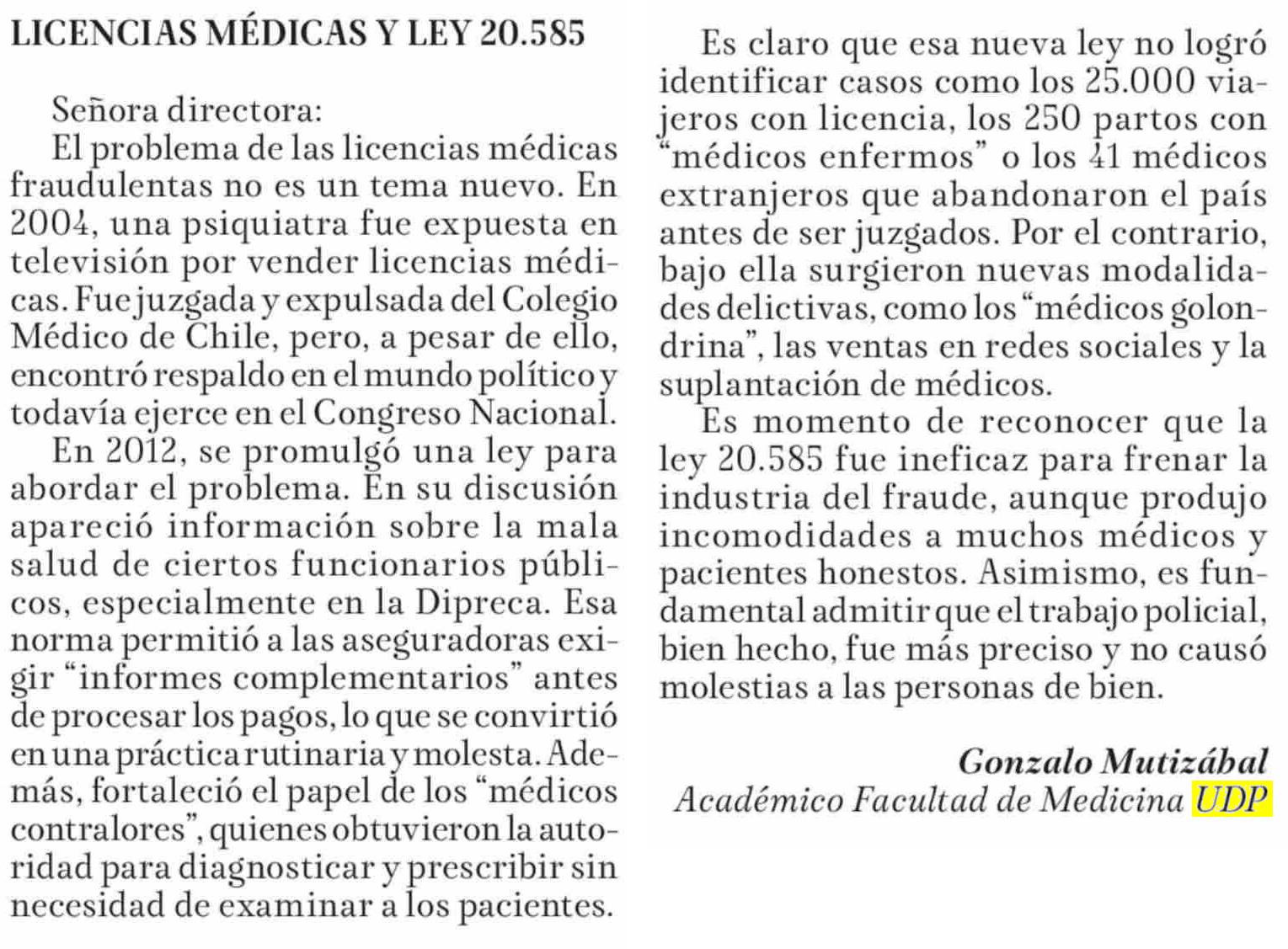 CARTAS: LICENCIAS MÉDICAS Y LEY 20.585