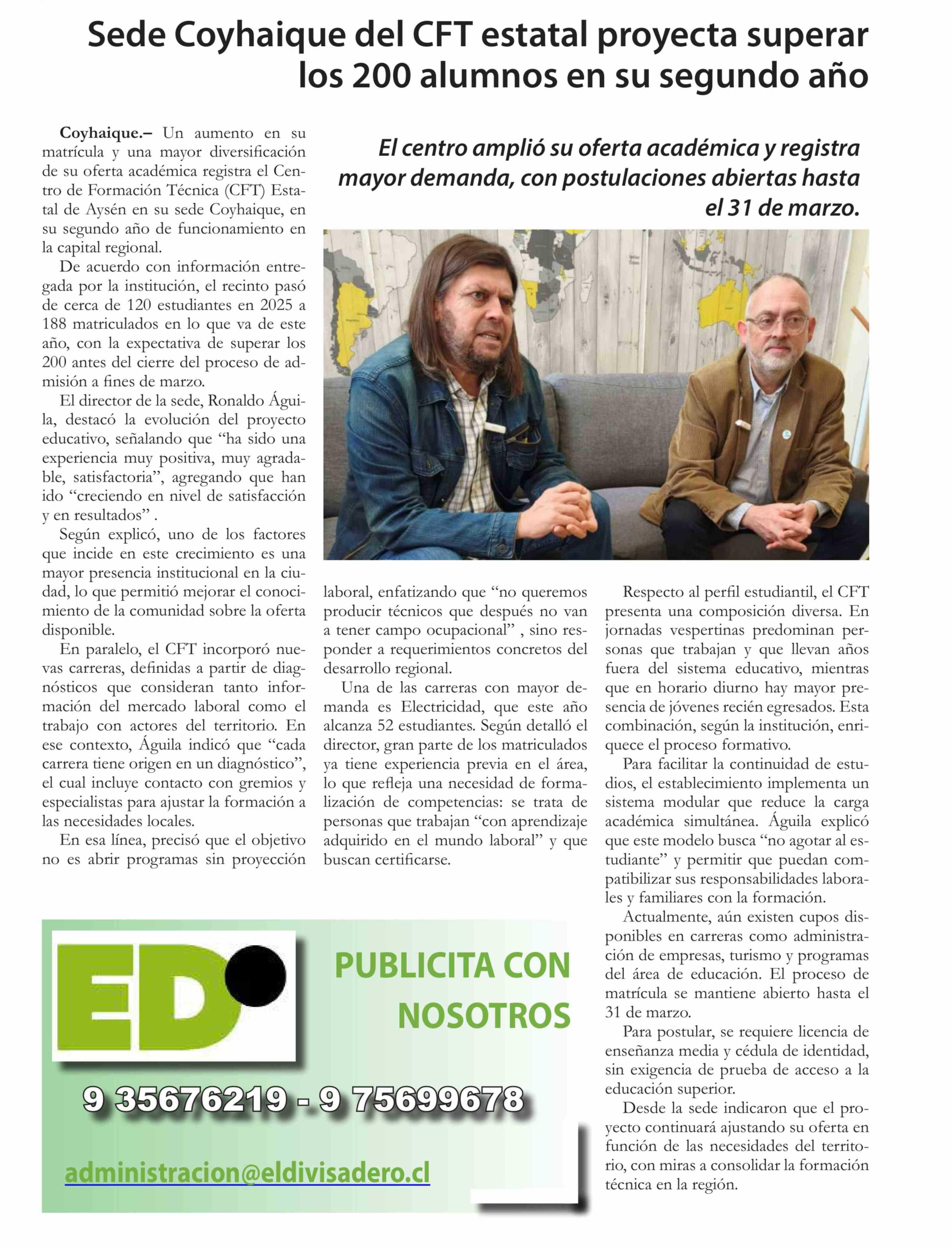 Sede Coyhaique del CFT estatal proyecta superar los 200 alumnos en su segundo año