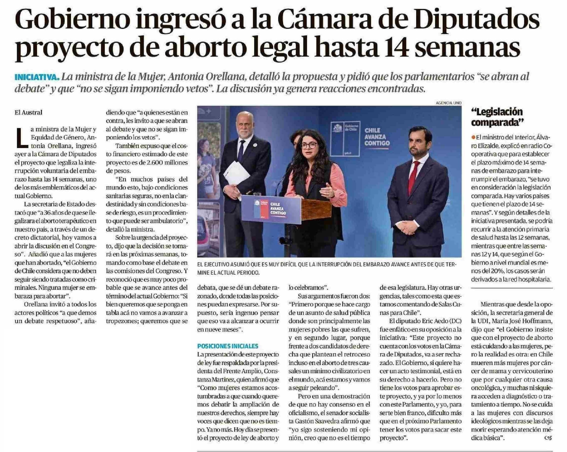Gobierno ingresó a la Cámara de Diputados proyecto de aborto legal hasta 14 semanas