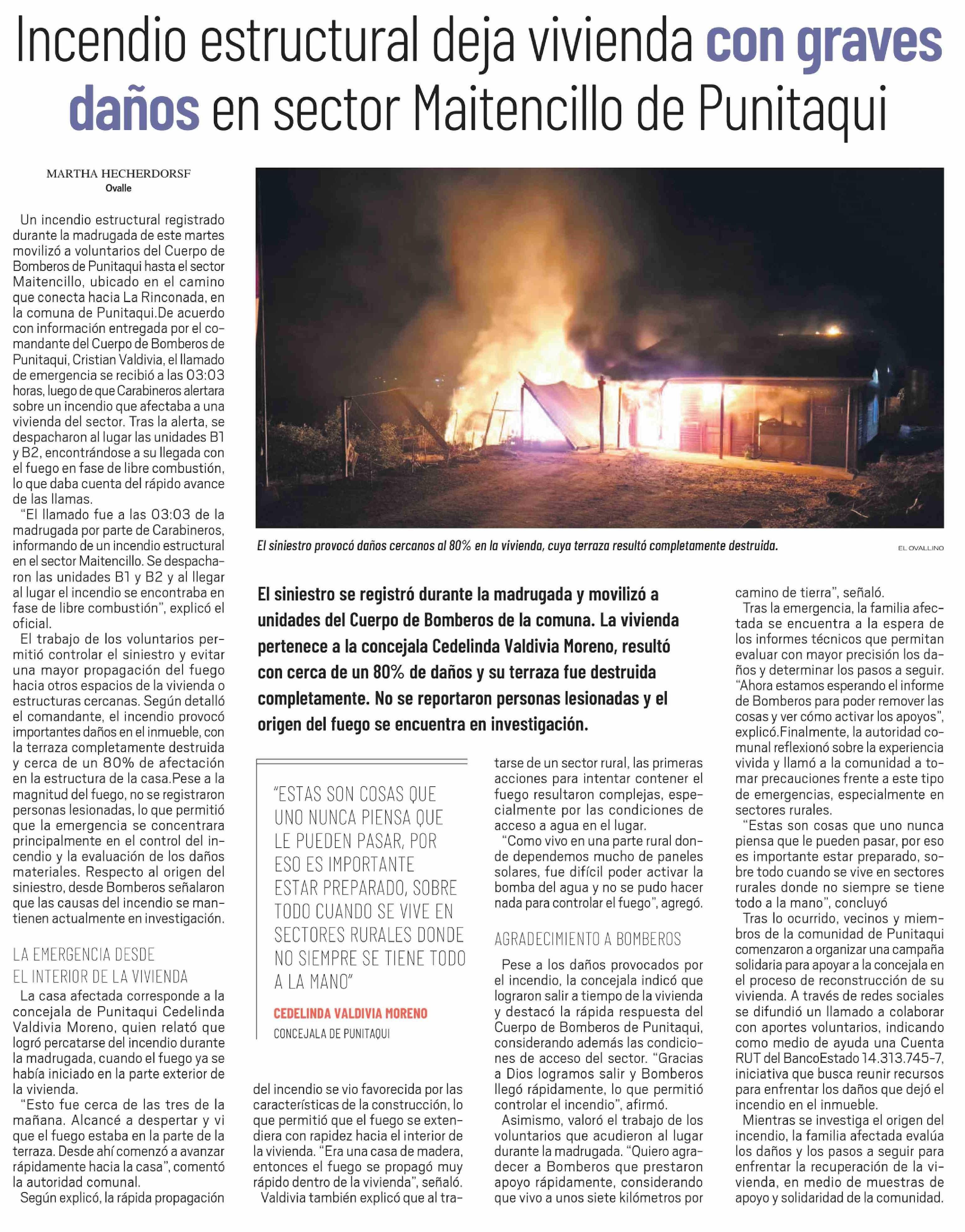 Incendio estructural deja vivienda con graves daños en sector Maitencillo de Punitaqui