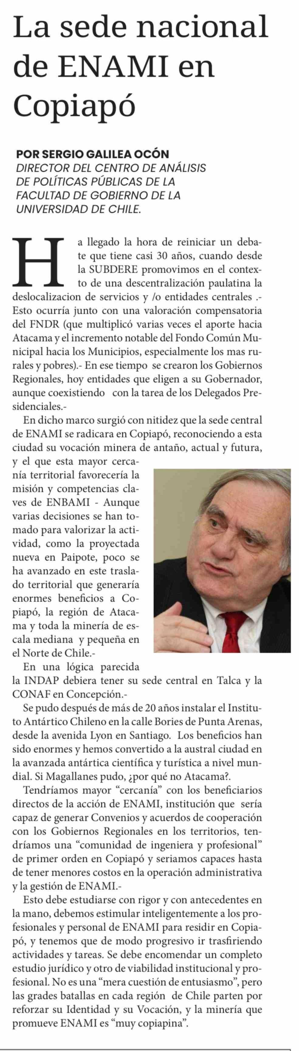 Columnas de Opinión: La sede nacional de ENAMI en Copiapó