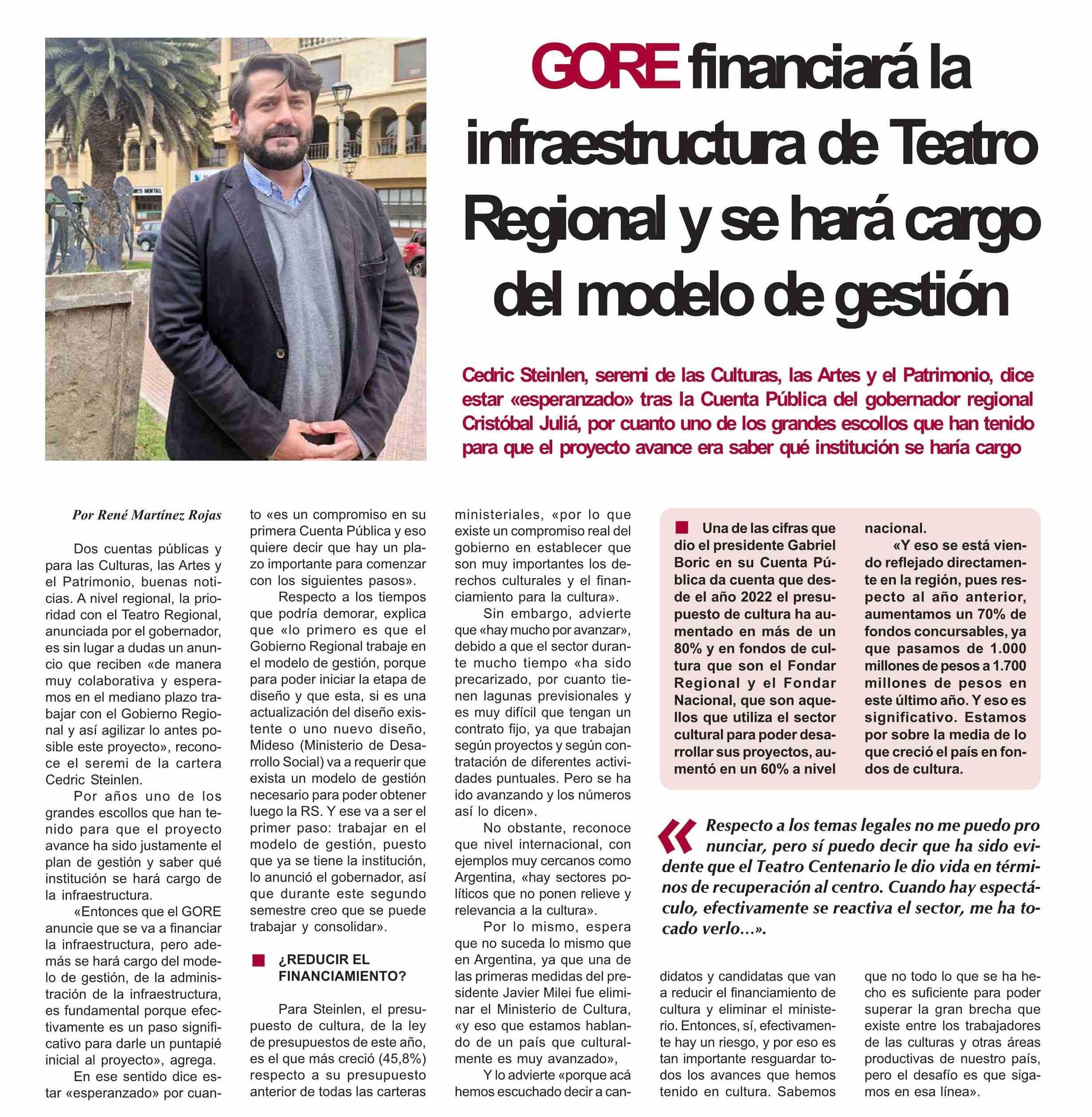GORE financiará la infraestructura de Teatro Regional y se hará cargo del modelo de gestión