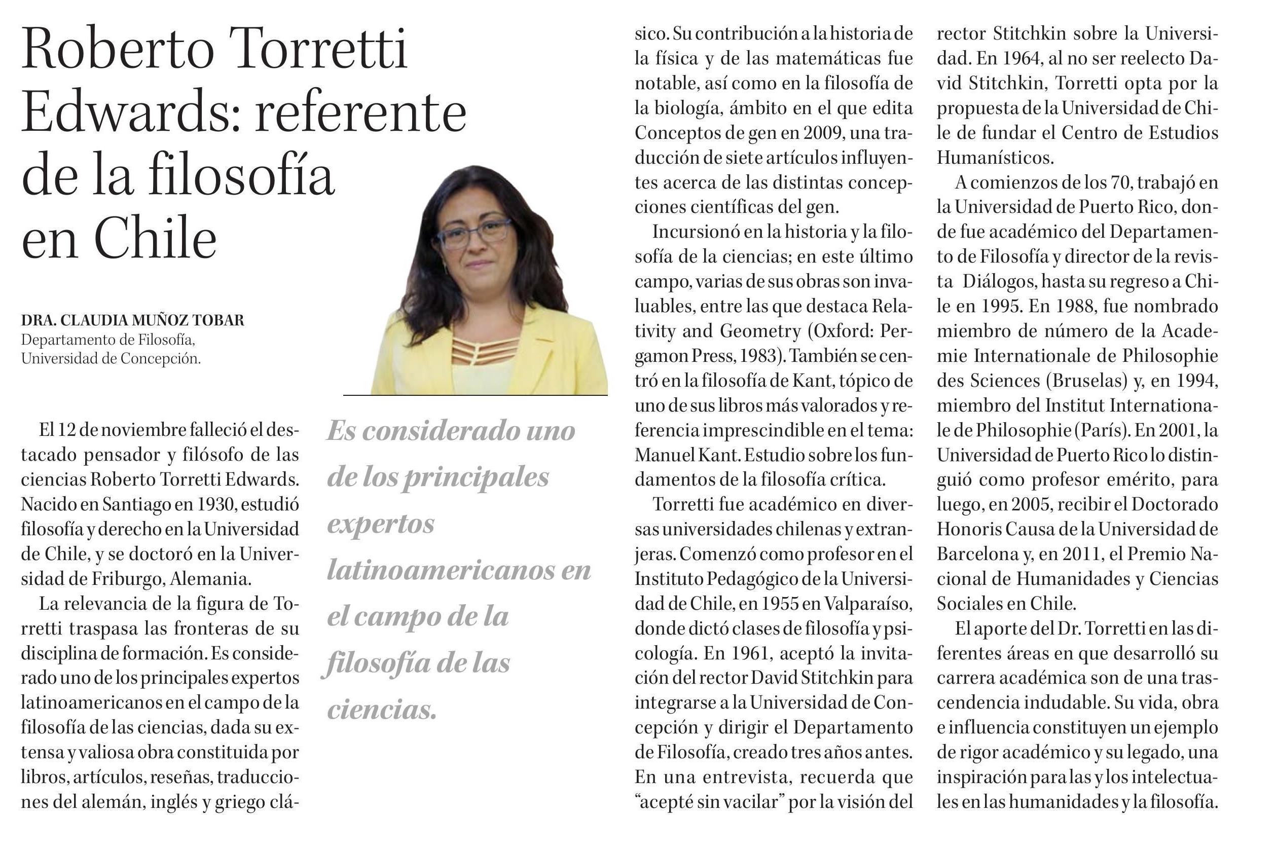 Roberto Torretti Edwards: referente de la filosofía en Chile