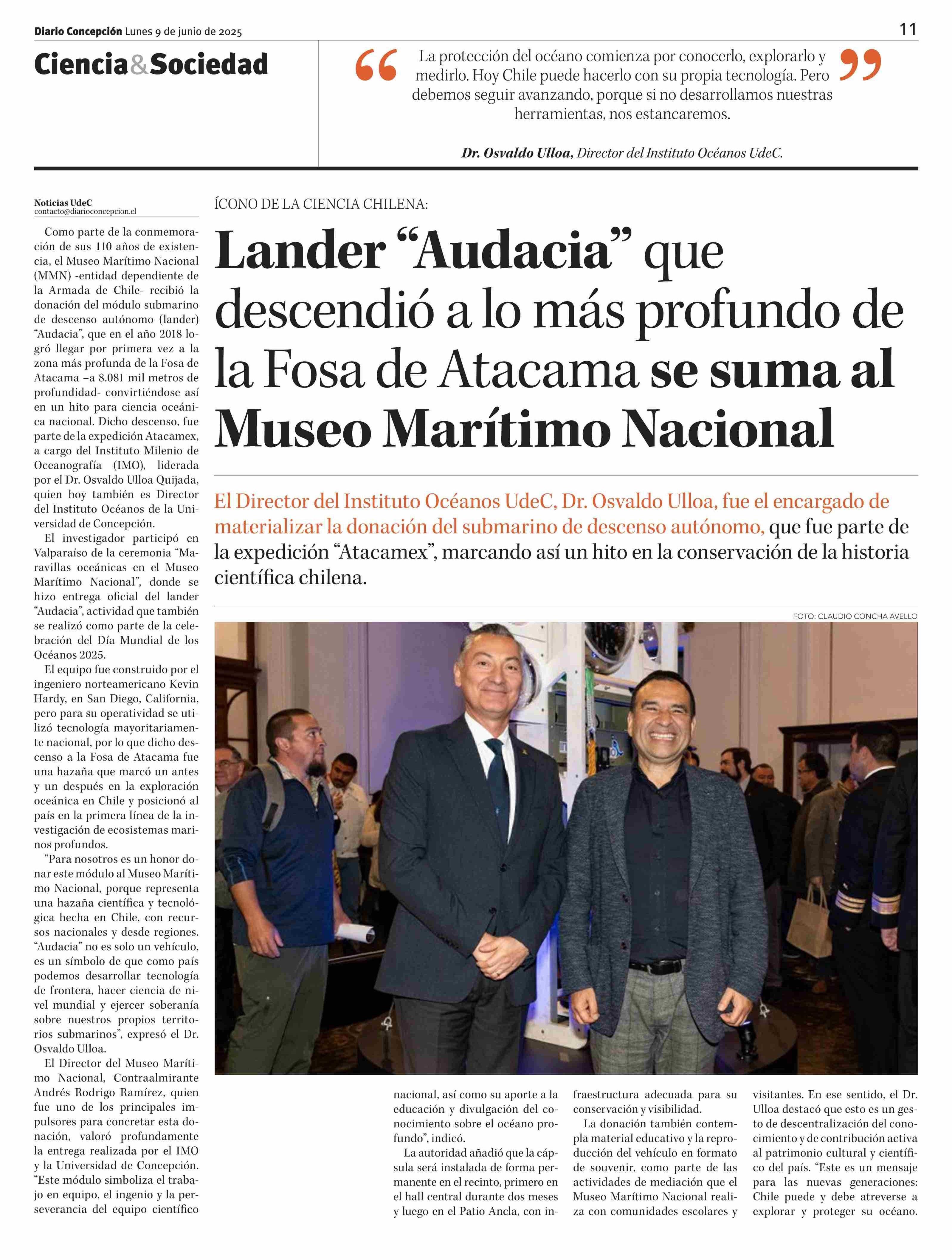 Lander "Audacia" que descendió a lo más profundo de la Fosa de Atacama se suma al Museo Marítimo Nacional