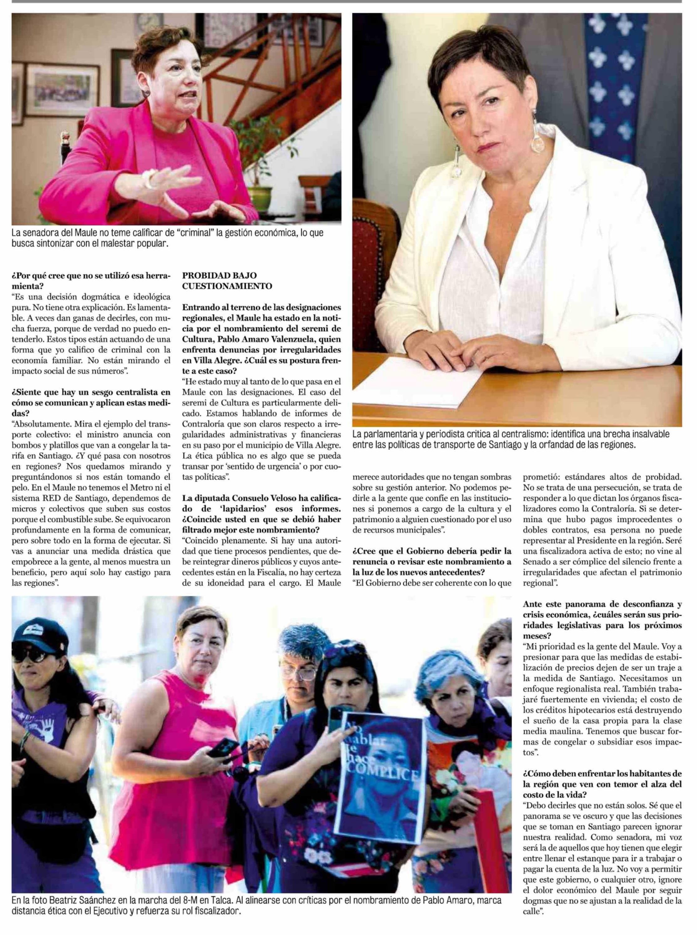 Título: Beatriz Sánchez: "Alza de combustibles es una decisión dogmática que castiga al Maule mientras en Santiago se congela"