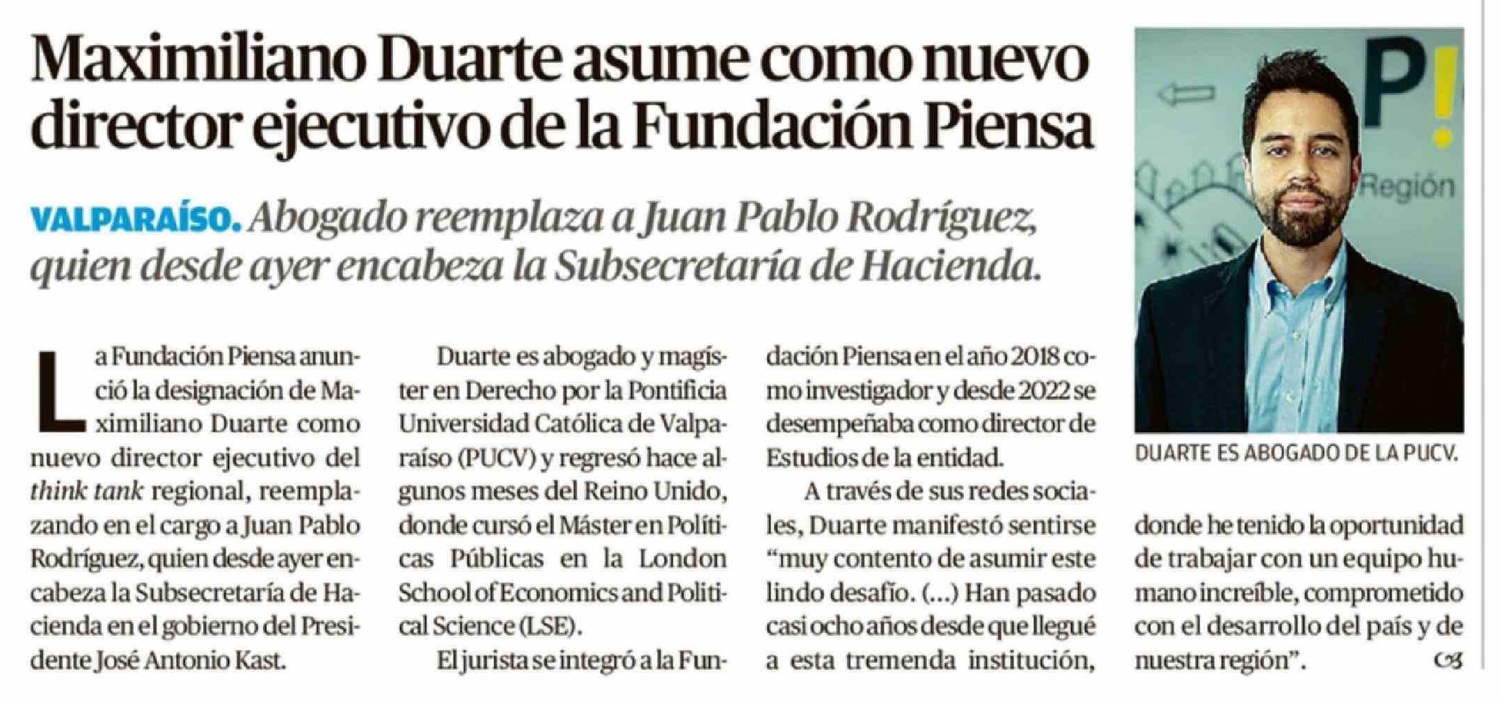 Título: Maximiliano Duarte asume como nuevo director ejecutivo de la Fundación Piensa