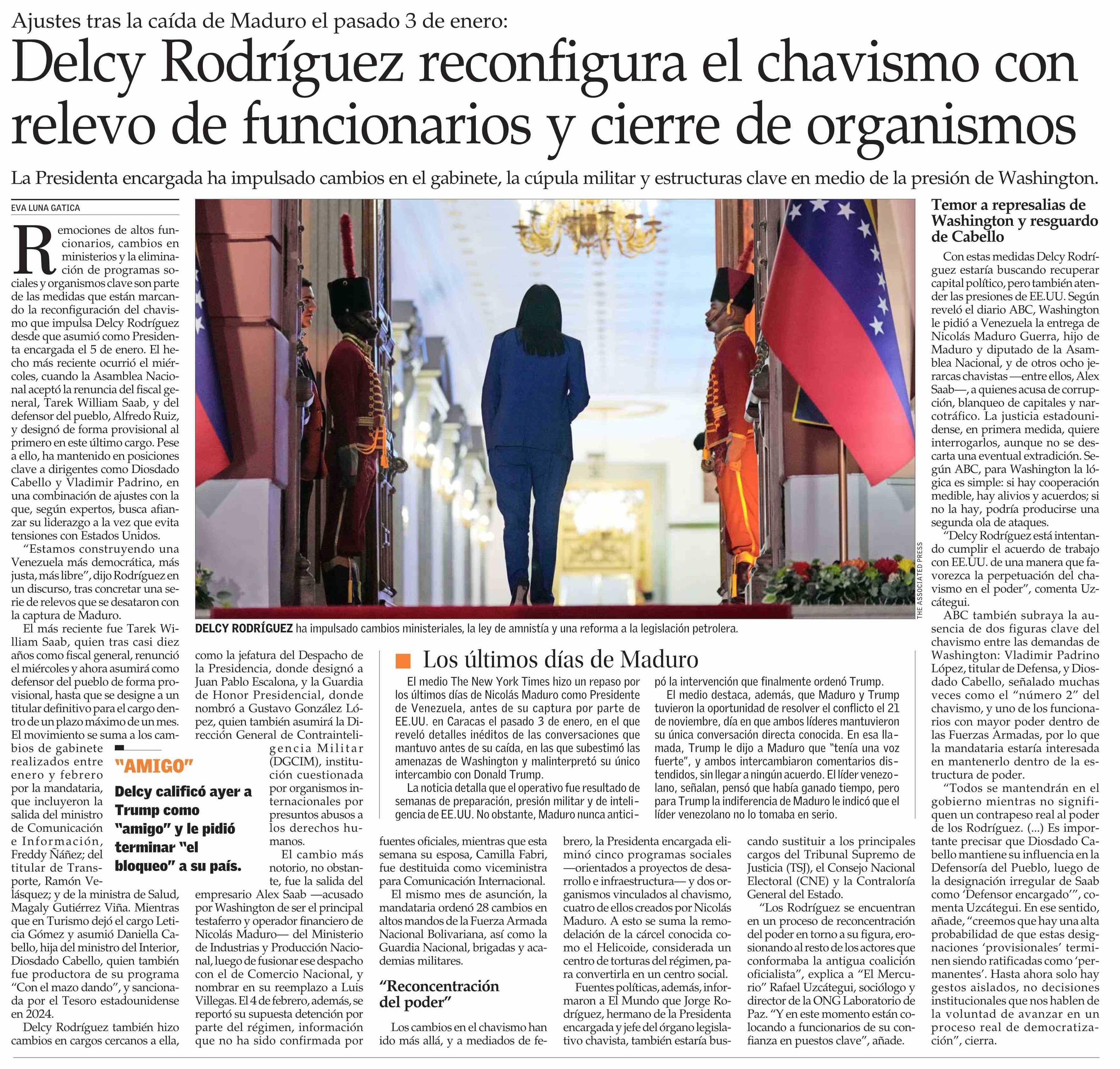 Delcy Rodríguez reconfigura el chavismo con relevo de funcionarios y cierre de organismos